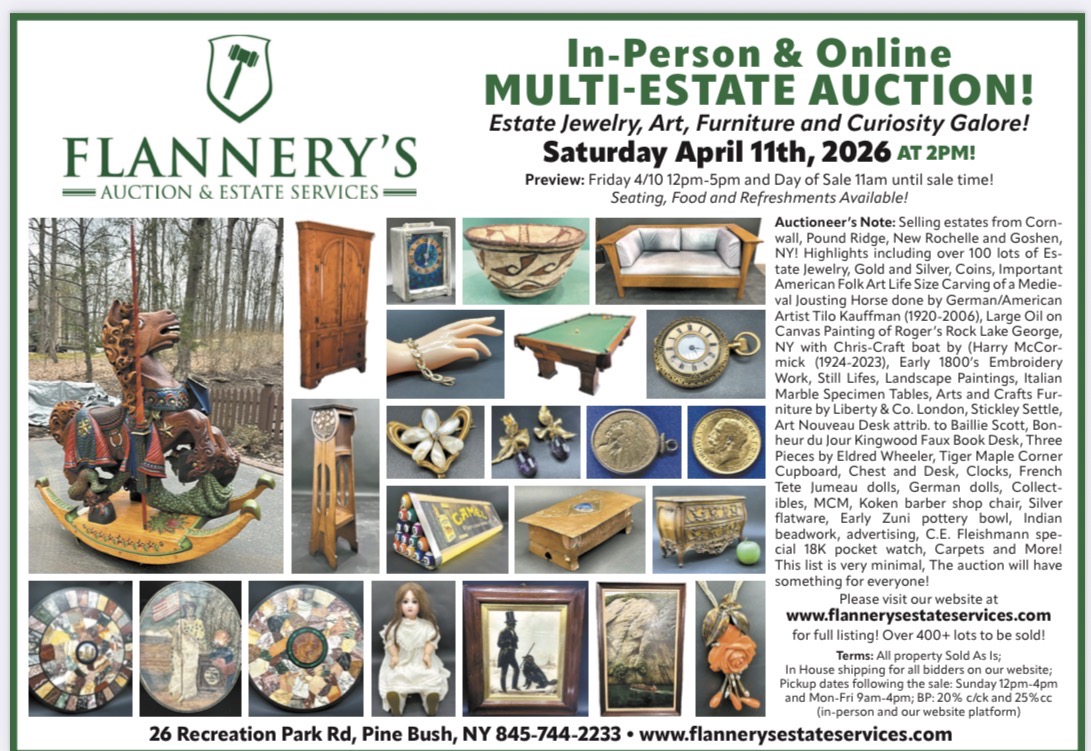 Flannery’s Auction & Estate Services has been helping clients sell their estates since 2002. Our auction house is located in Pine Bush, New York, which has been functioning as an auction house for over thirty years.