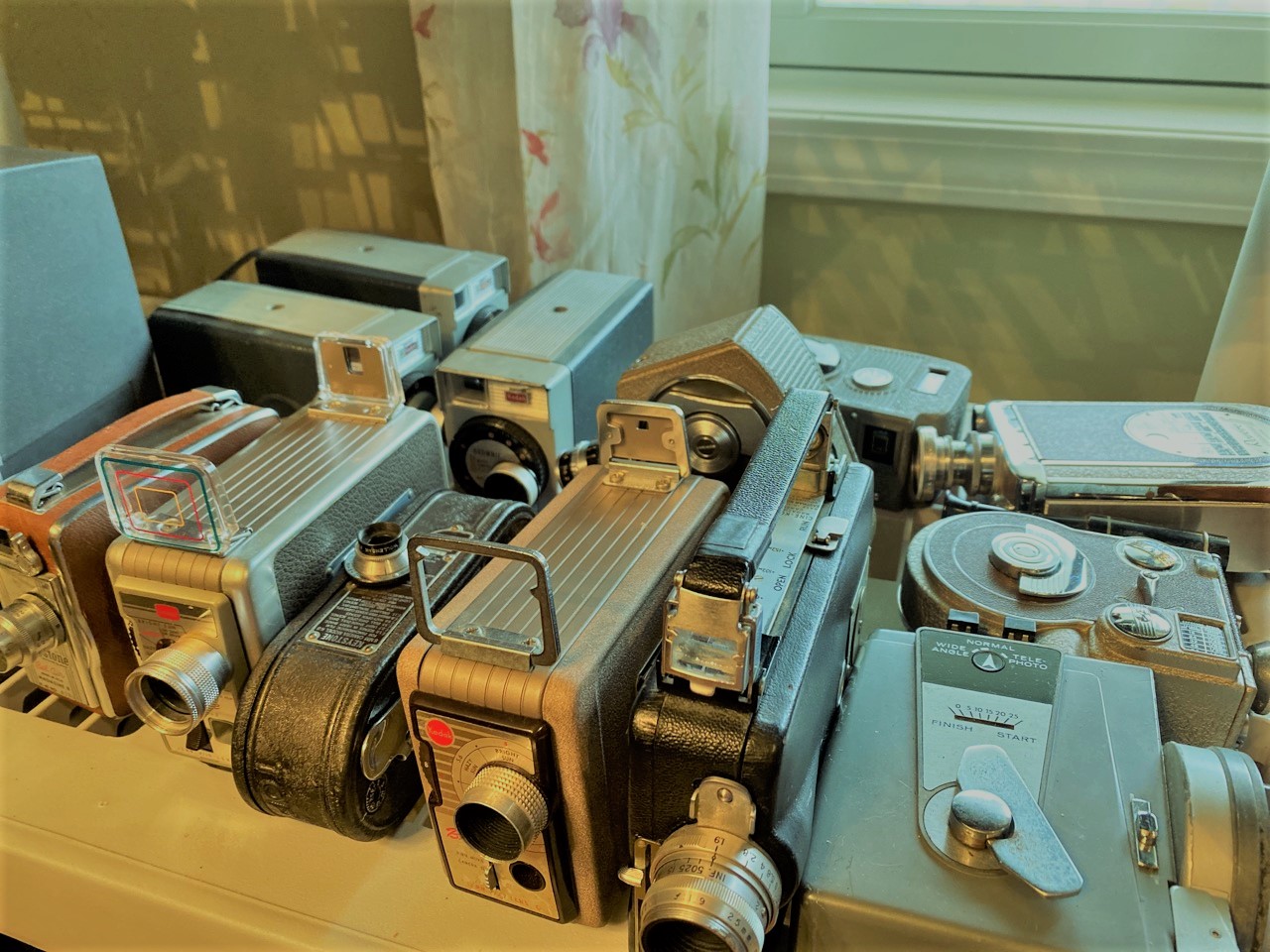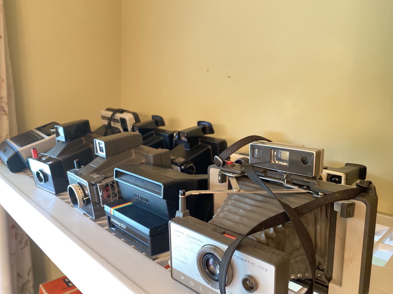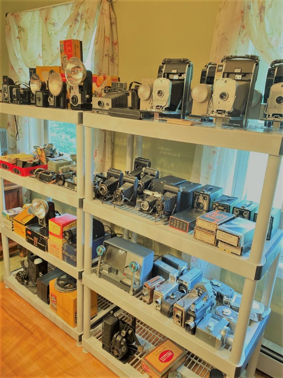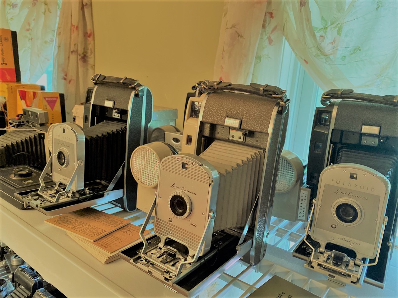 60 plus piece Vintage camera collection including Polaroid Land cameras, Brownies, Fold up, SLR,video cameras and accessories. As seen in photograph preview.