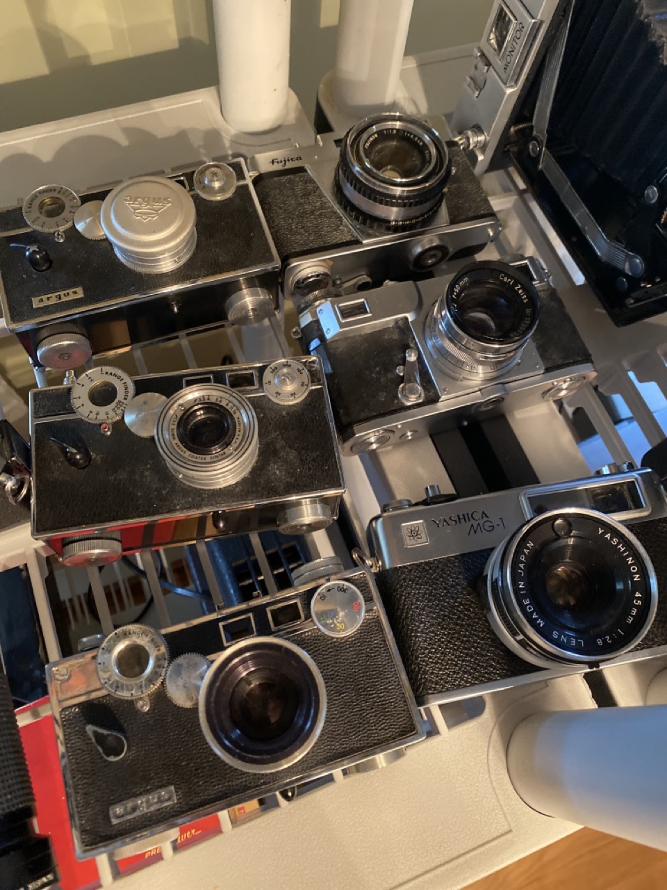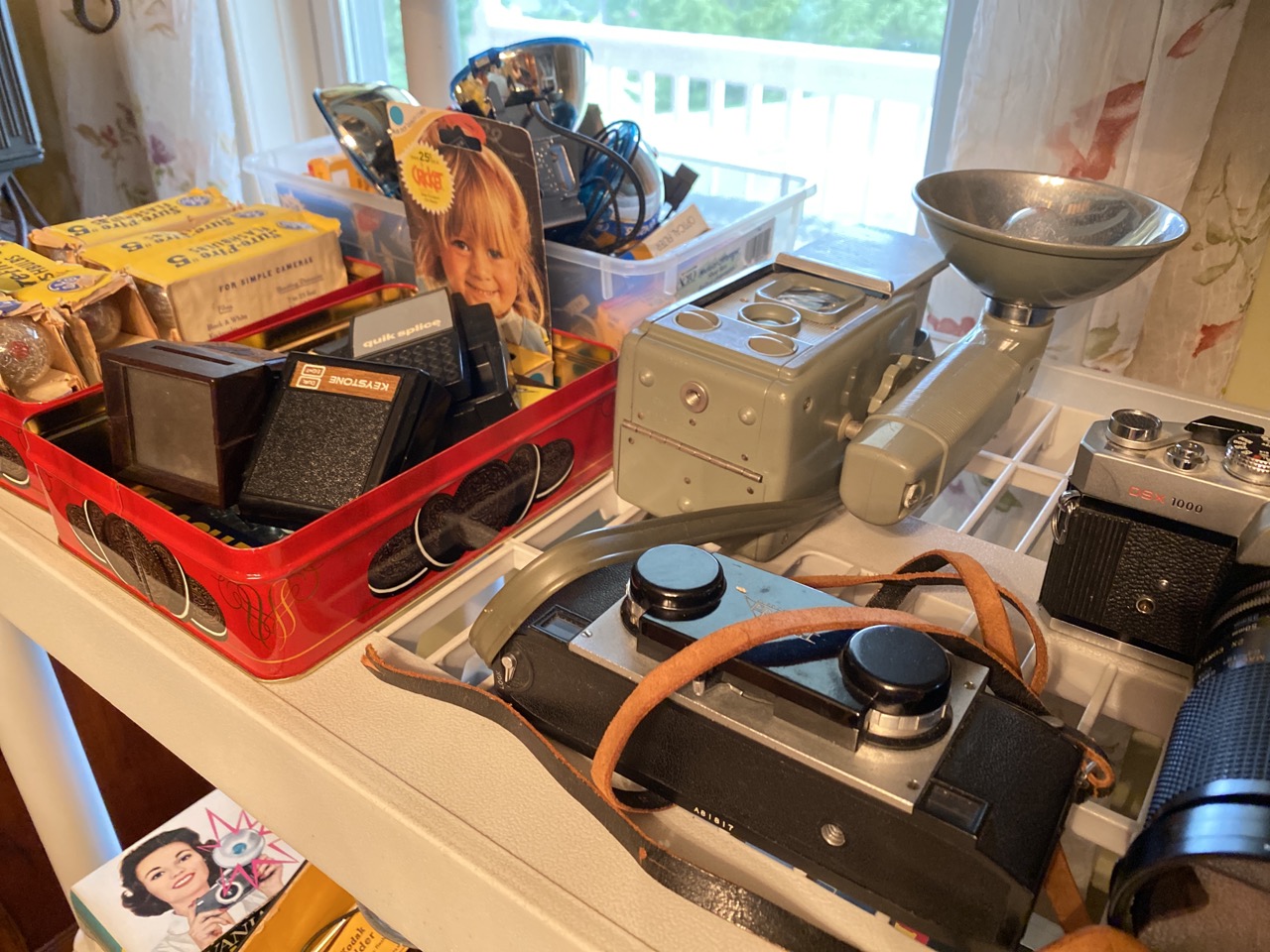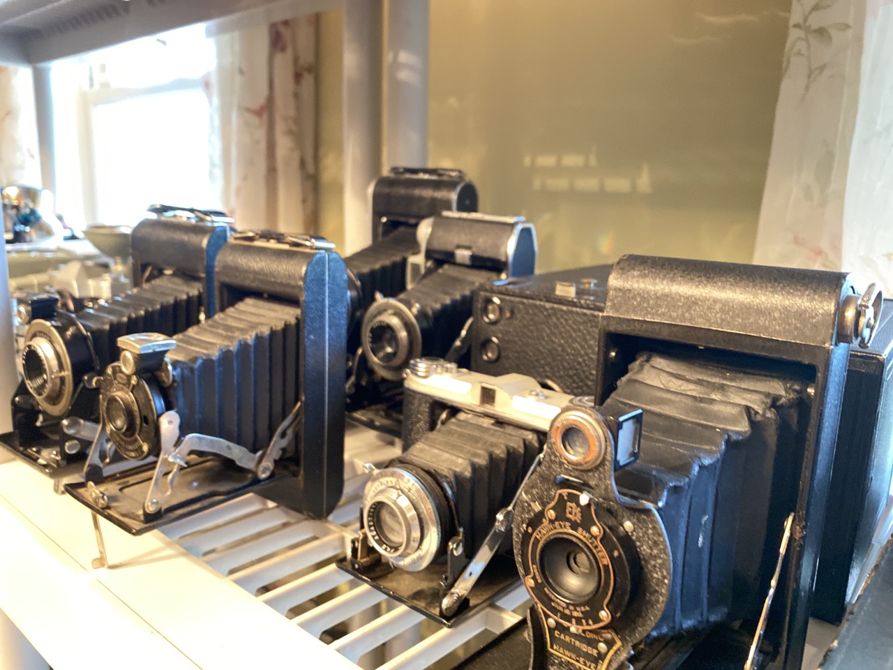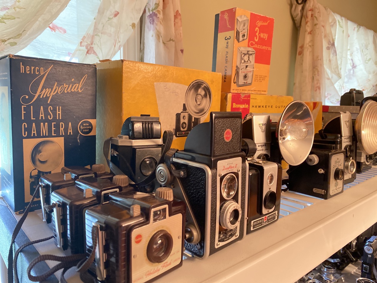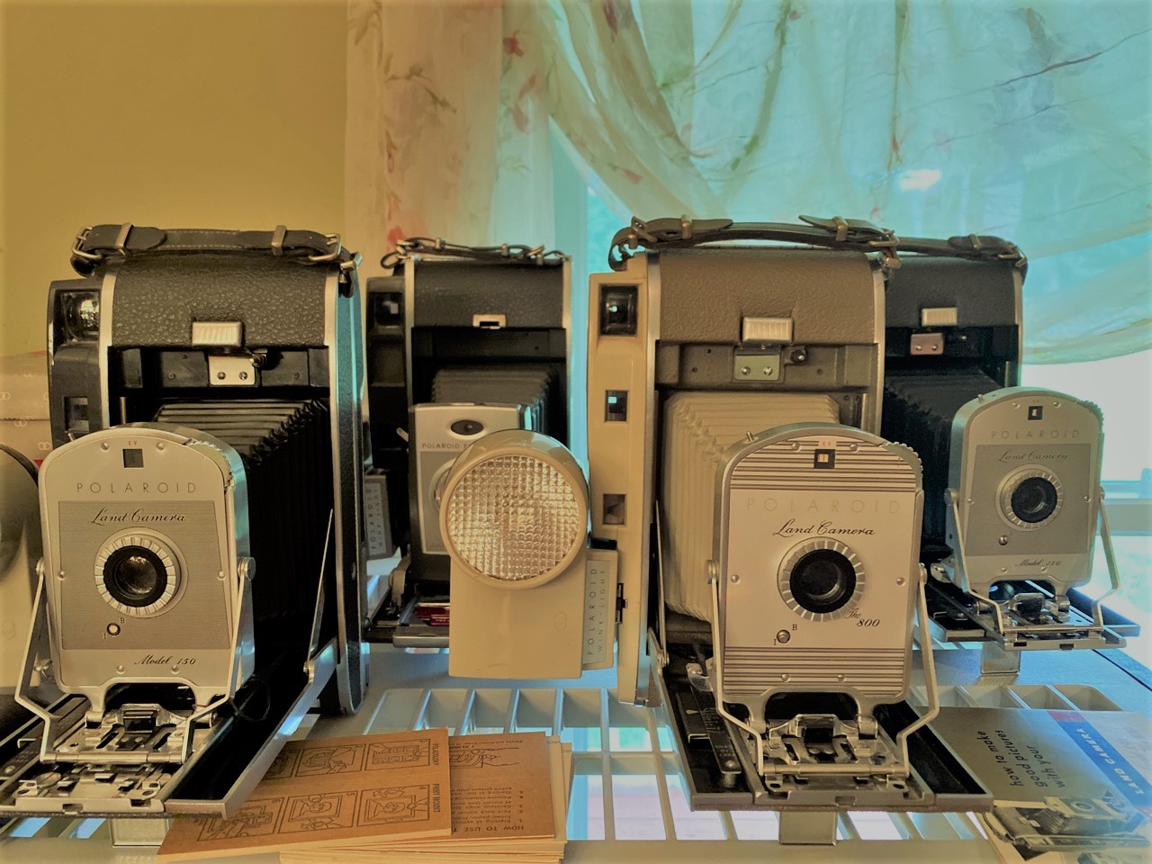 60 plus piece Vintage camera collection including Polaroid Land cameras, Brownies, Fold up, SLR,video cameras and accessories. As seen in photograph preview.