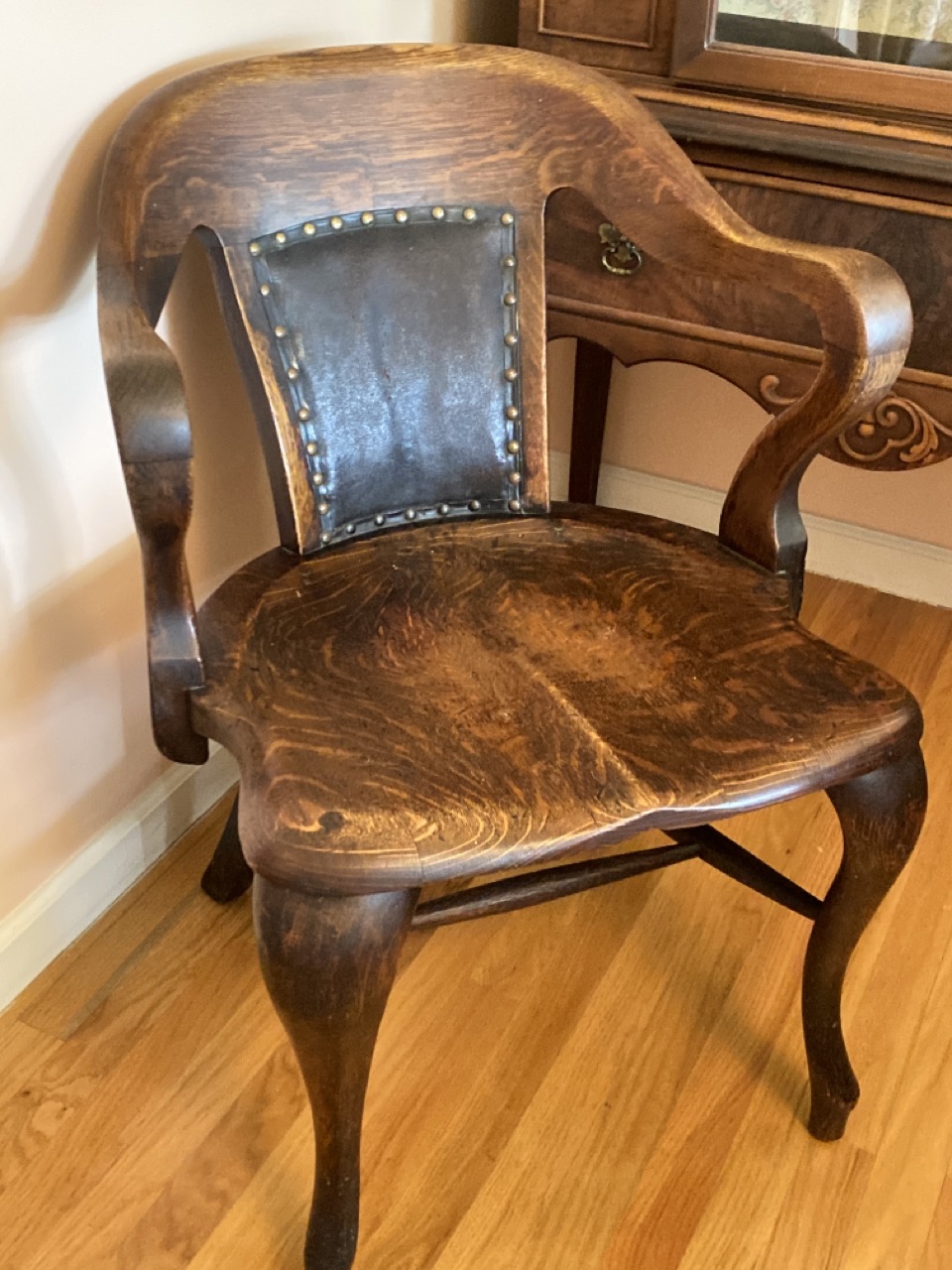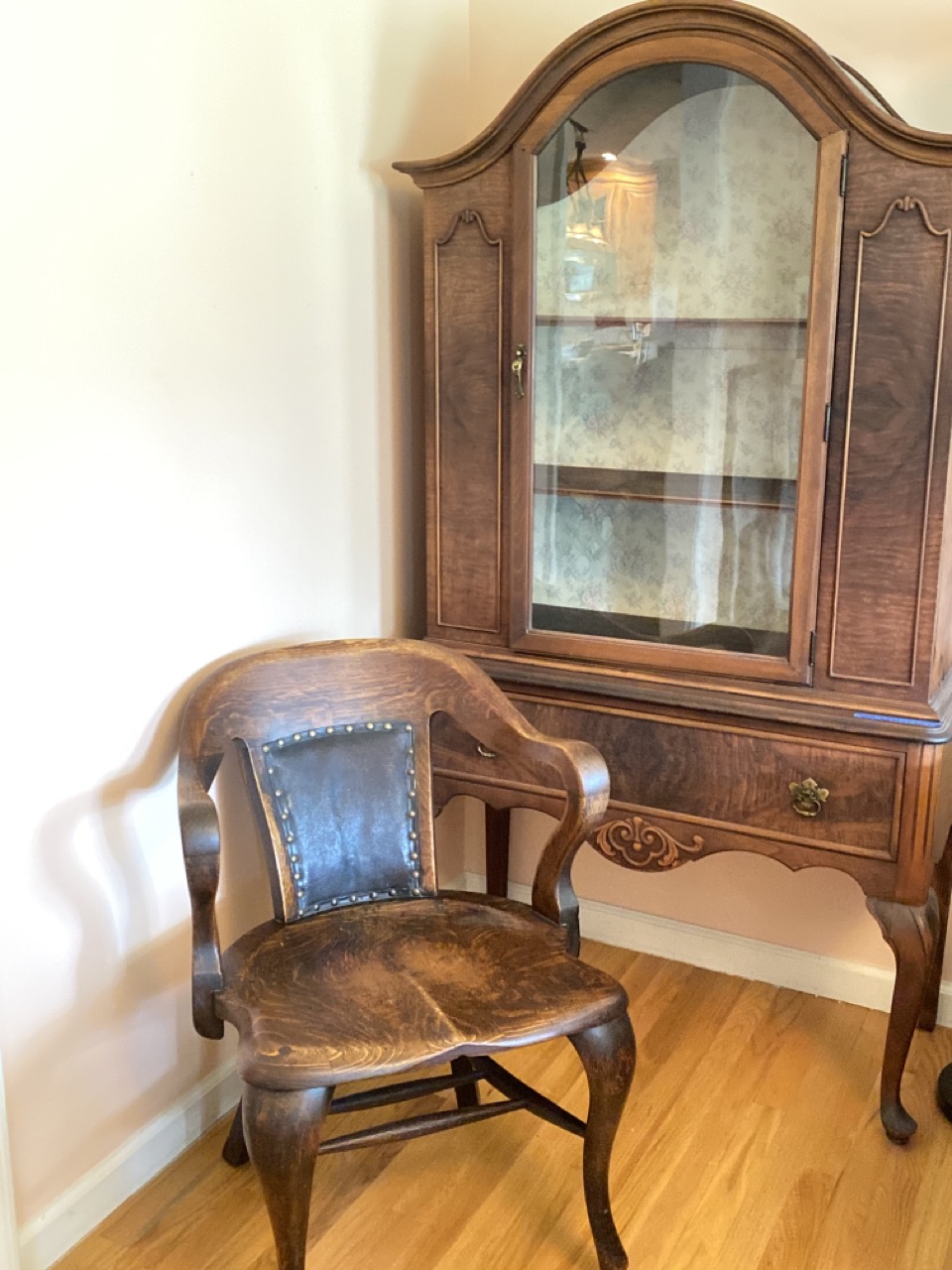 1930's Walnut china closet and oak office chair by Globe Wernicke.