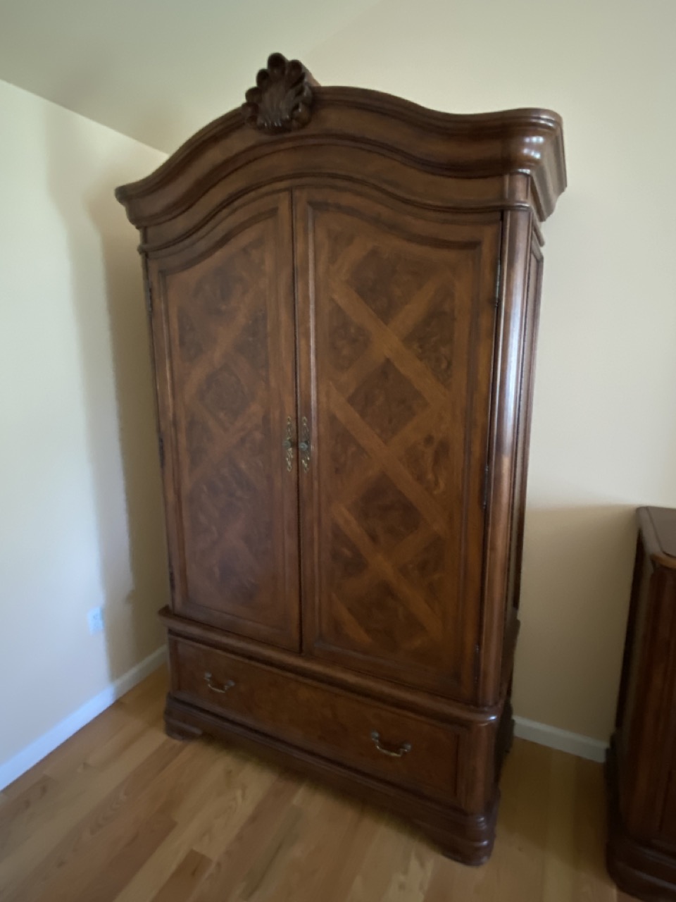Headboard dimensions: 74”h Nightstands 30” x 33 1/2” x 19” Dresser w/ mirror 90” x 75” x 19” Armoire 93” x 52 1/2” x 22”