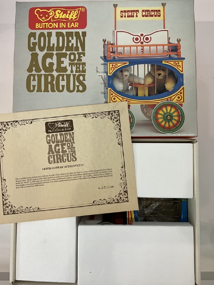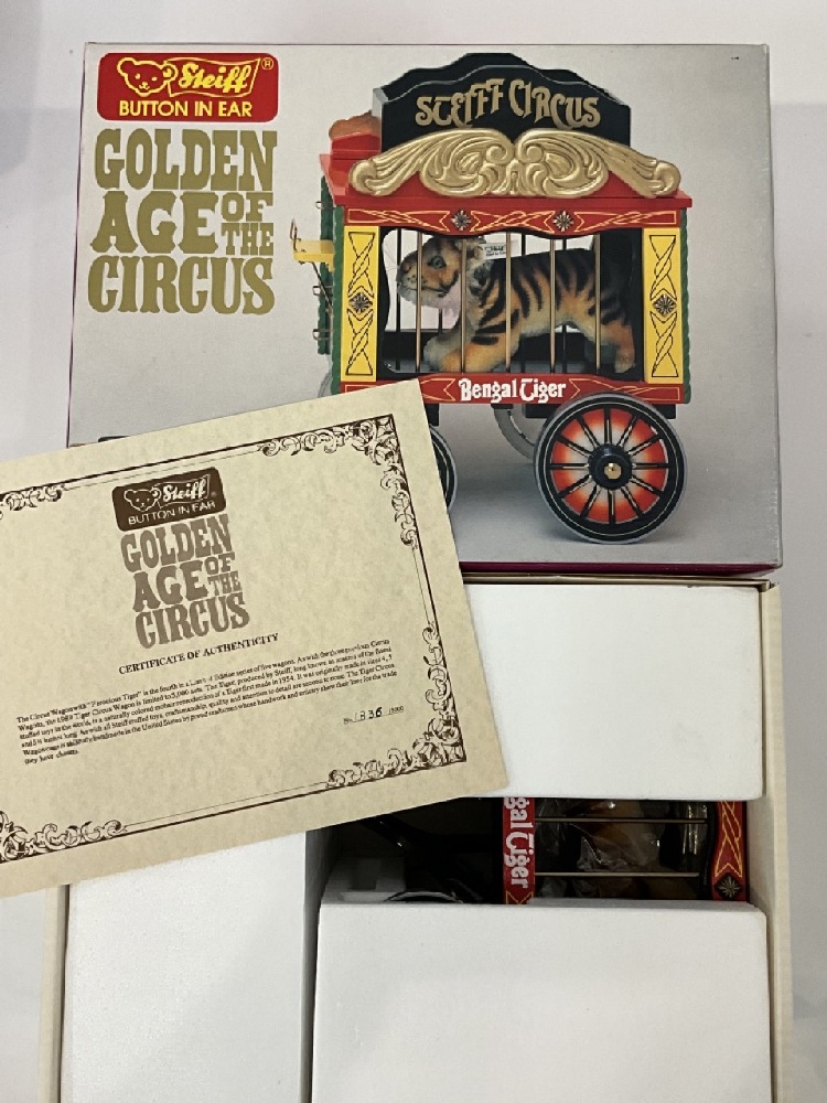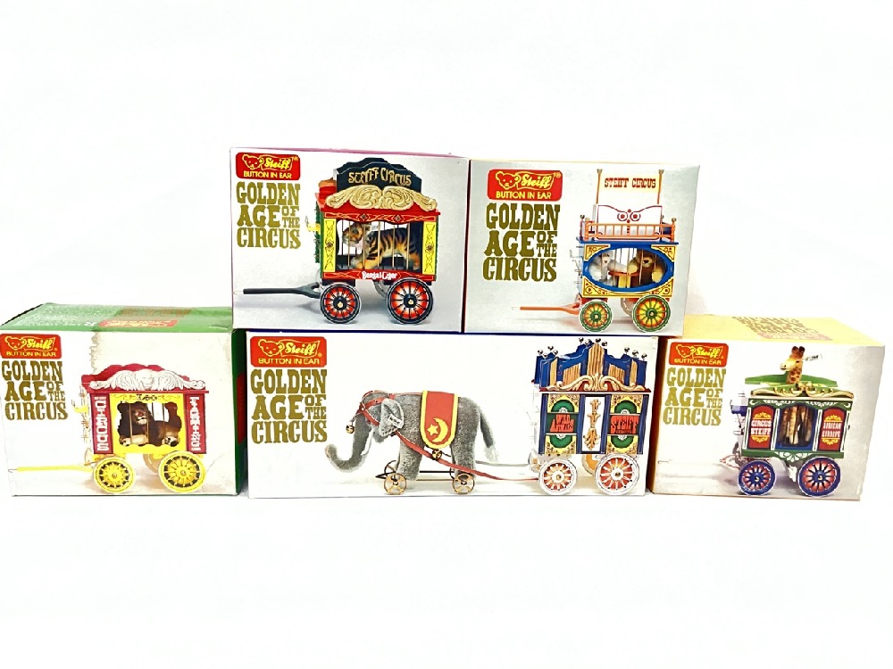 Steiff Golden Age of Circus Five (5) Pieces. All With Original Boxes. Styles #0100/86,87,89,88,89,