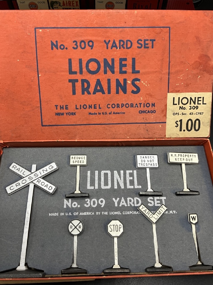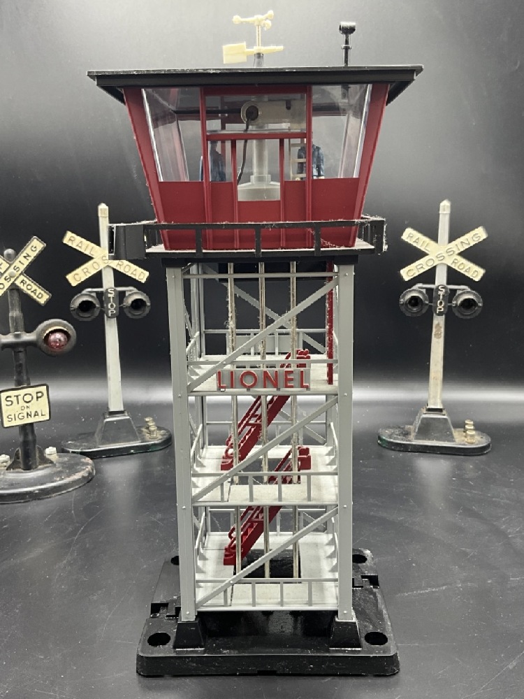 Lionel Train Accessories Includes Crossing Signals, No.309 Yard Set,Railroad Control Tower, Operating Semaphores, and Lionel 6411 Airplane.
