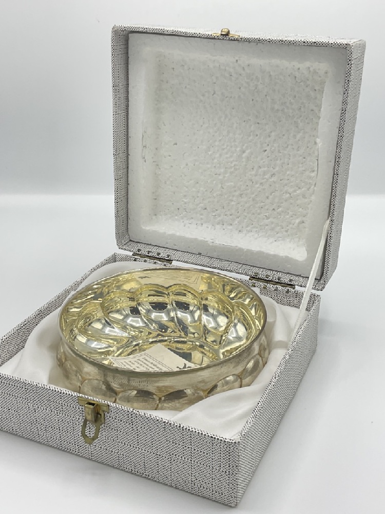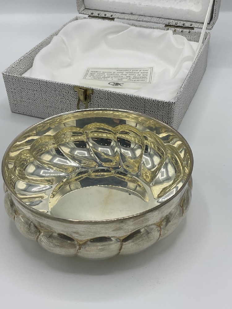 Italian 800 silver serving bowl with scalloped edge design. Include presentation box. Very nice condition.