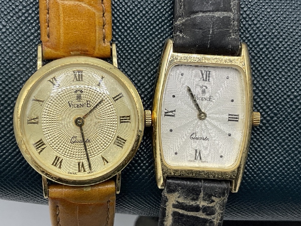 Two (2) 14K Gold Vincence Italian Wrist Watches.