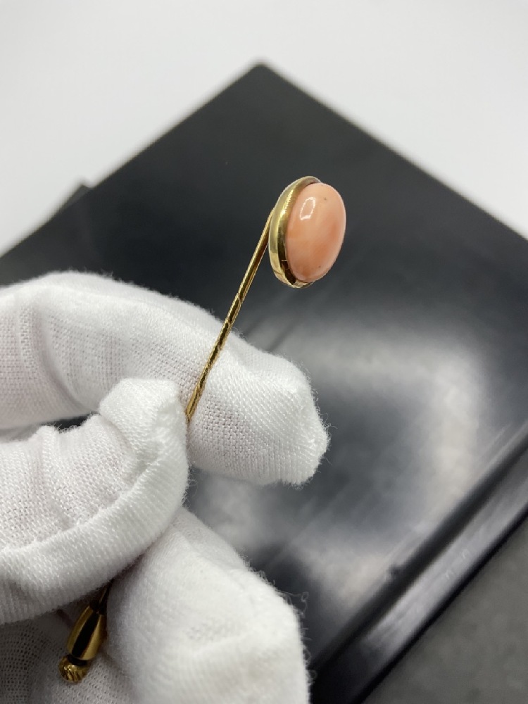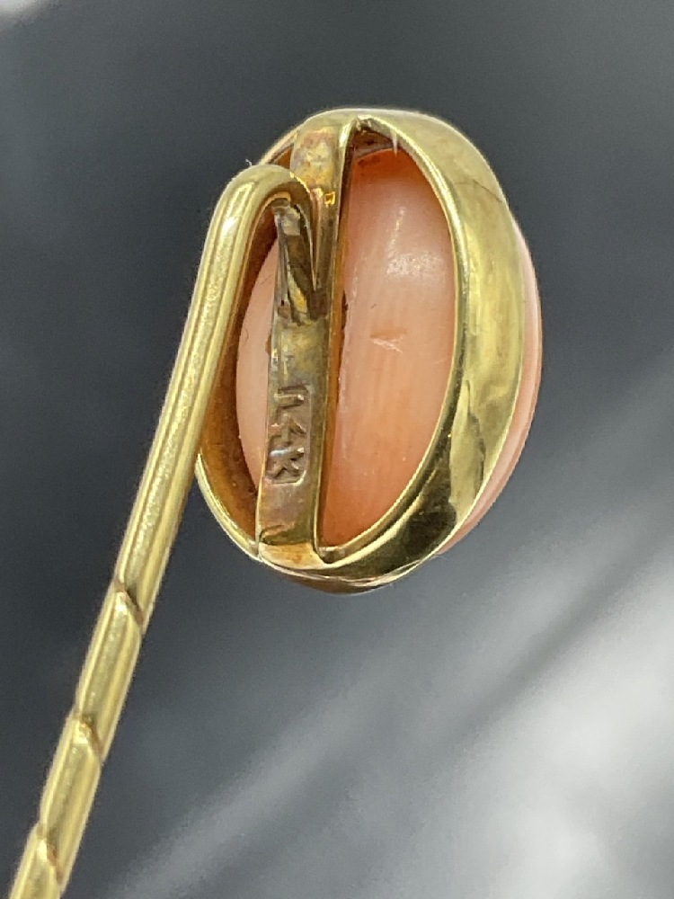 14K Gold Coral Stick Pin.