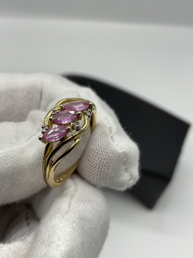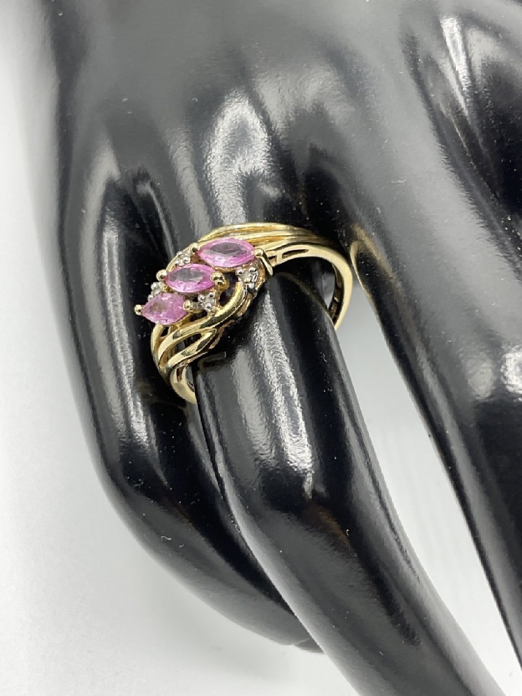 14K gold Pink sapphire cocktail ring with CZ diamonds.