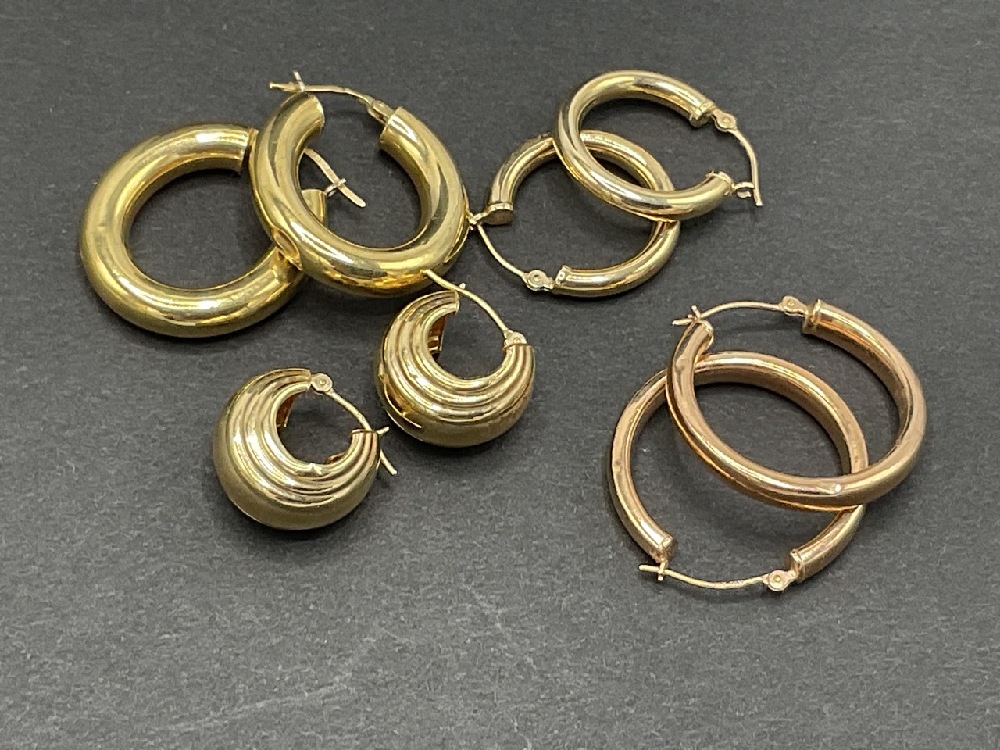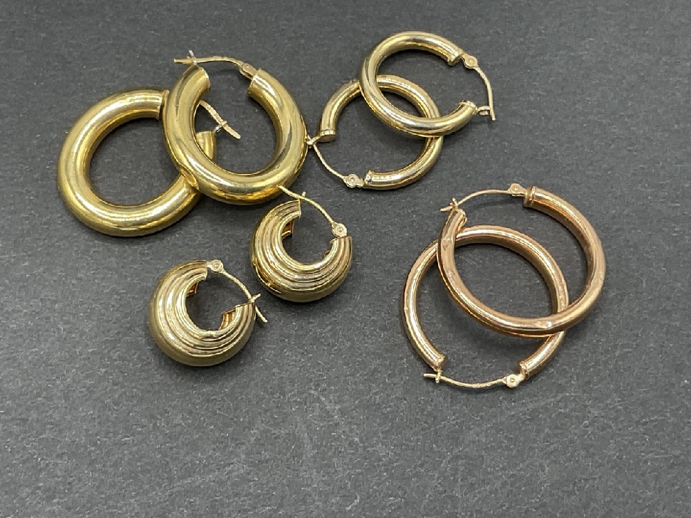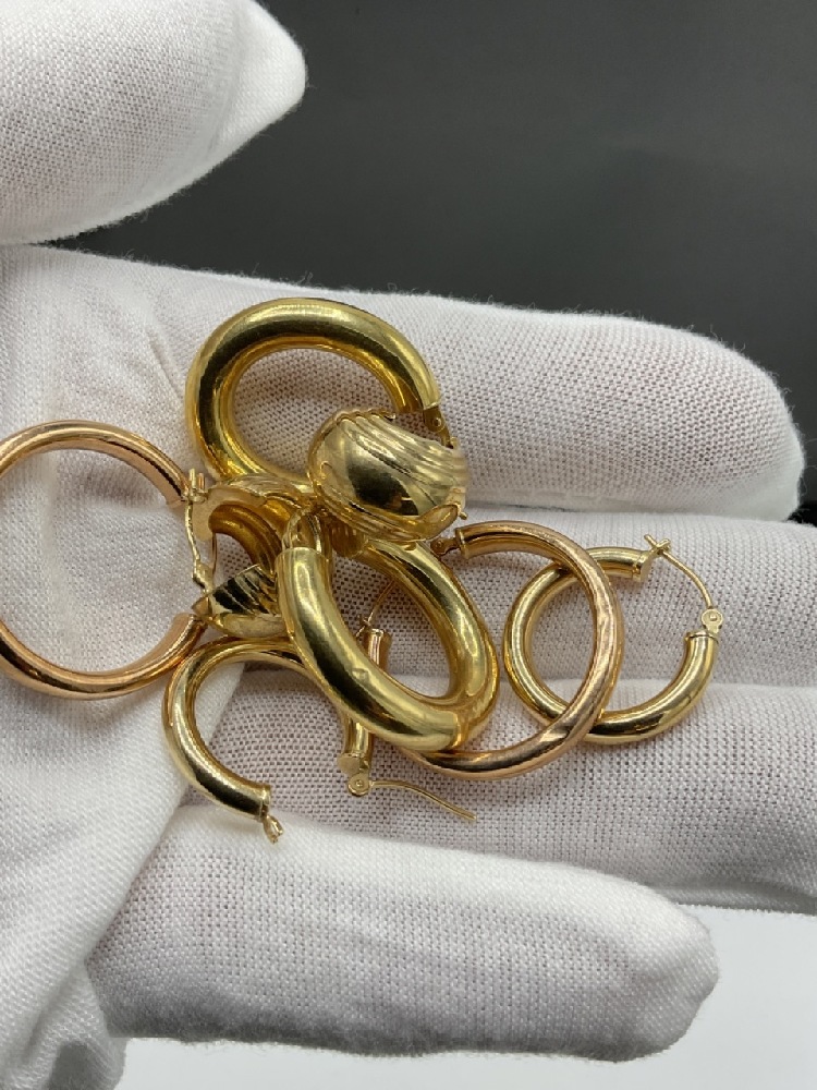 Four (4) Pairs of 14K yellow gold earrings.