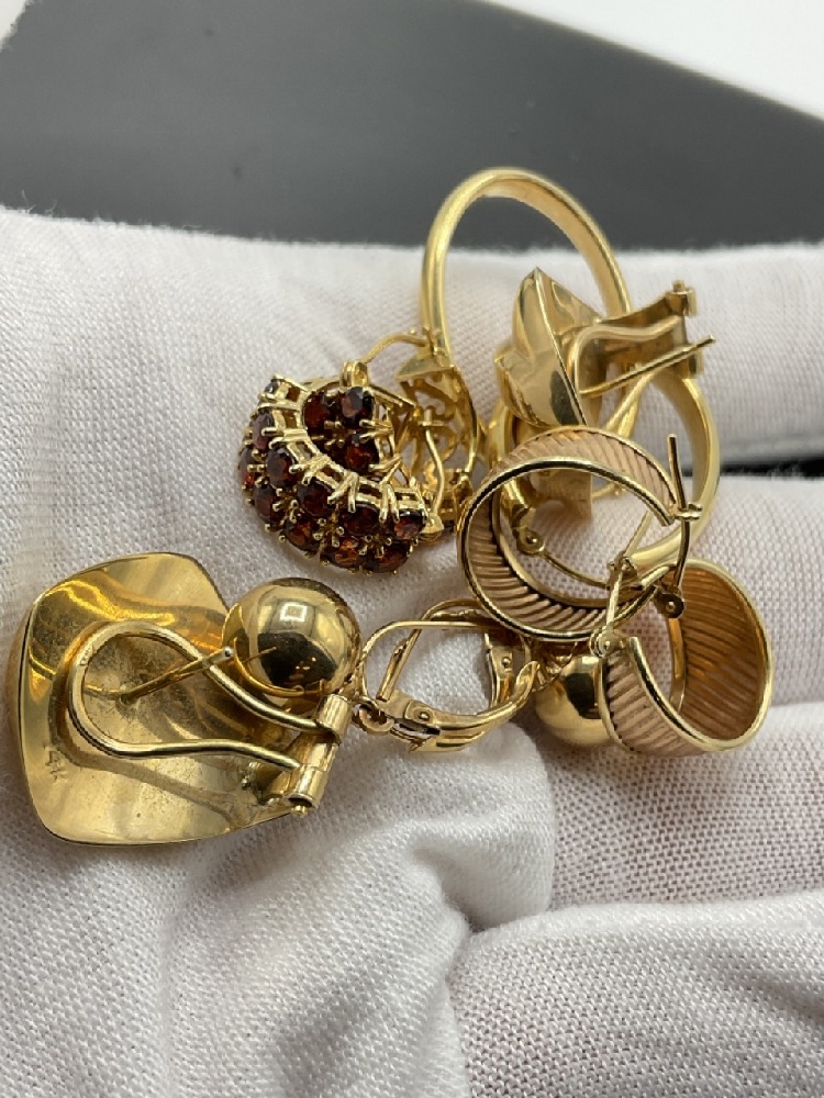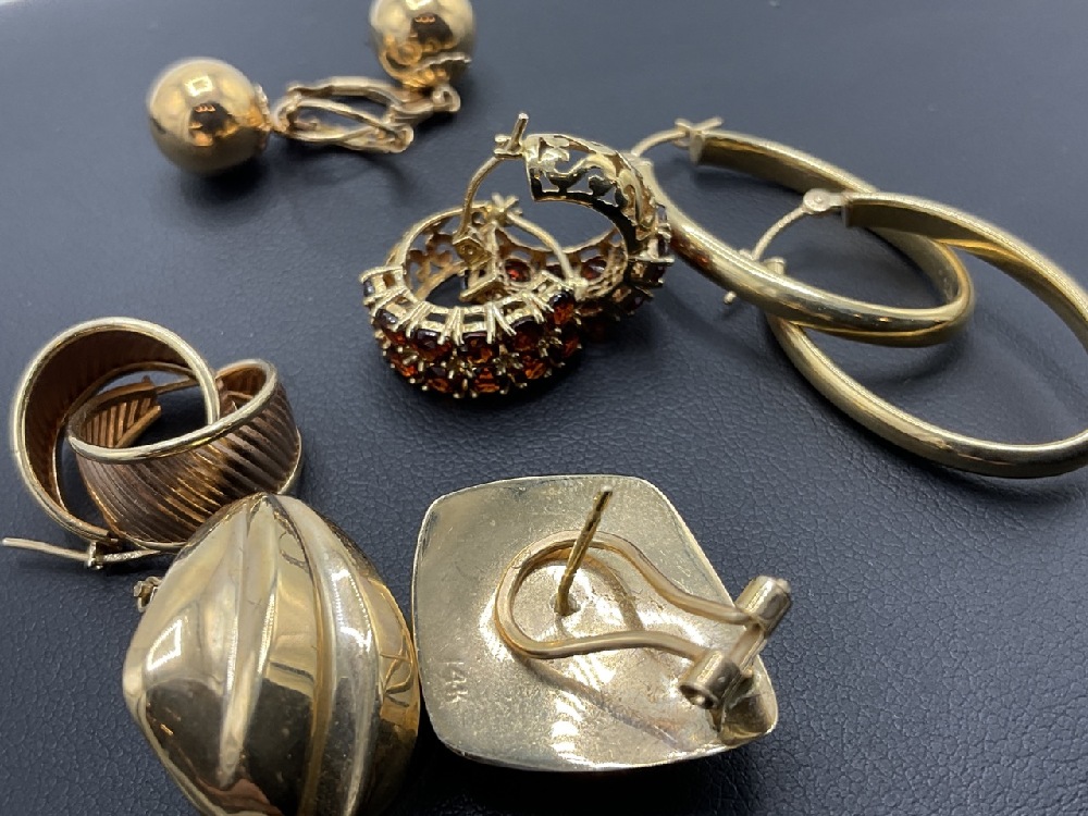 Five (5) Pairs of 14K Yellow Gold Earrings.