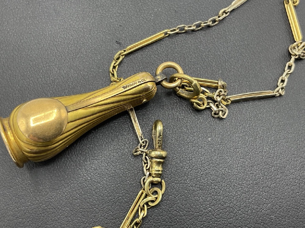 14K Tiffany & Co. Cigar Cutter and Watch Chain. Cigar cutter signed Tiffany & Co.