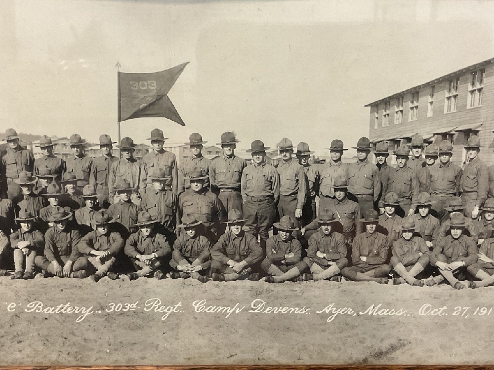 “E” Battery 303d. Regt. Camp Devens Ayer, Mass … Oct.27,1917 Military Panoramic Framed Photo