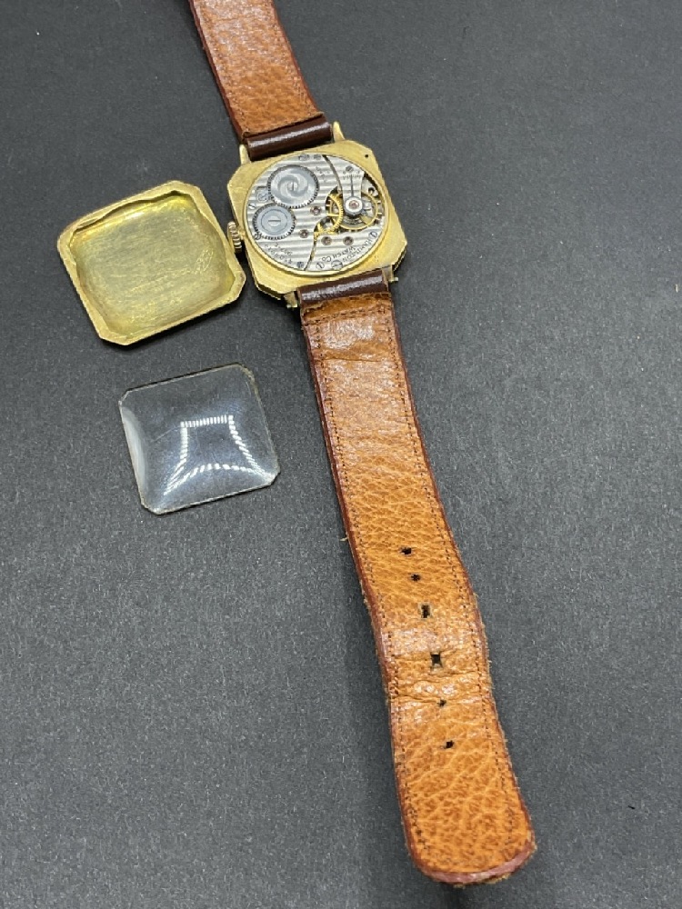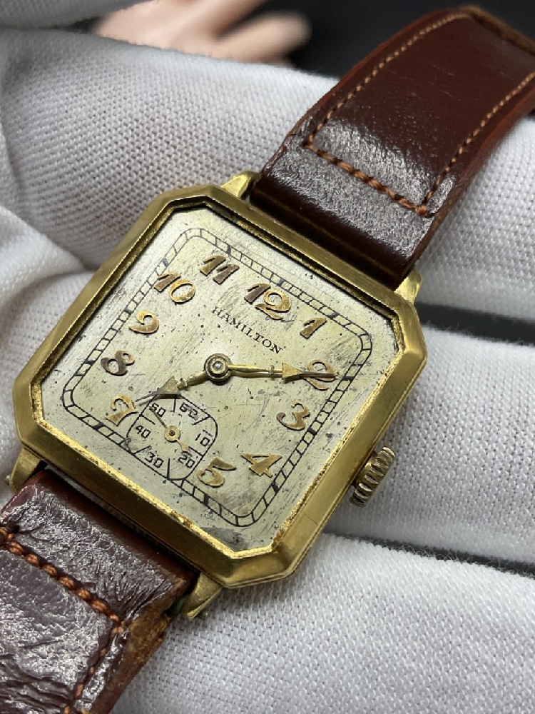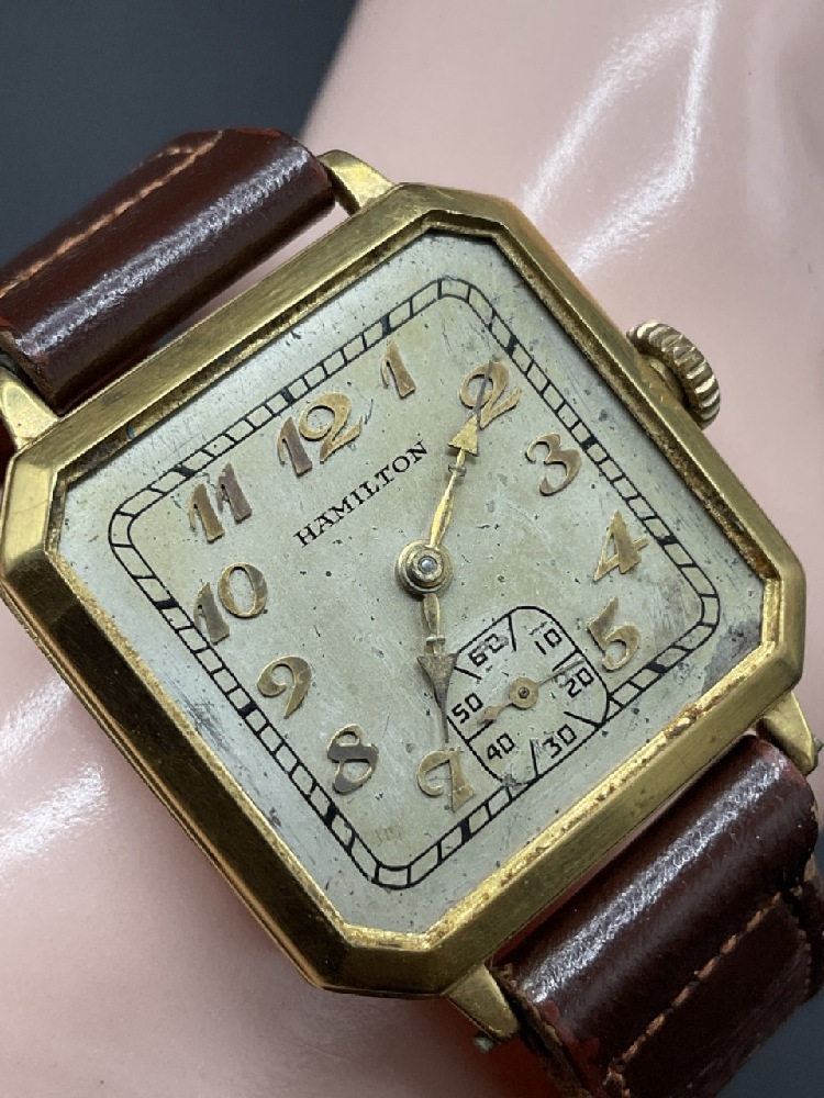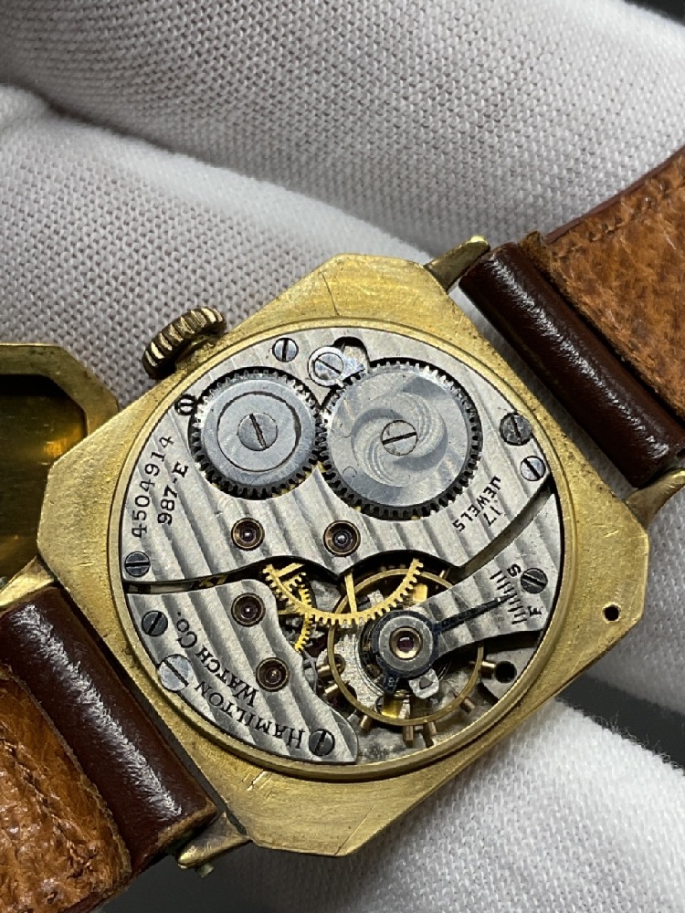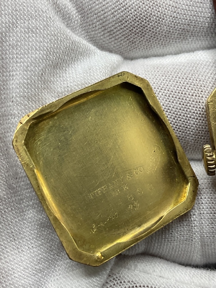 18K Gold Tiffany & Co. Men's Wristwatch. Workings by Hamilton Watch Company. 17 Jewels, Serial no. 450-4914. 987-E.