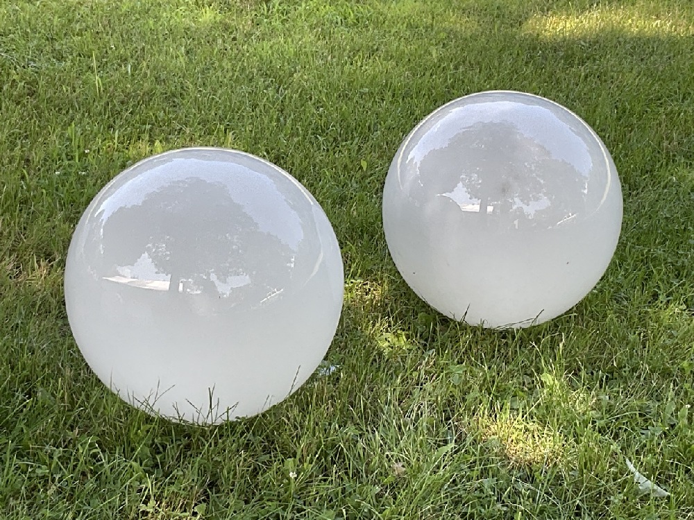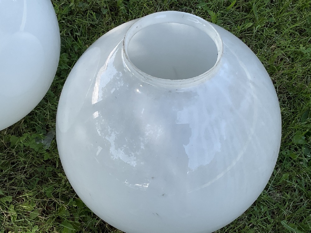 Two (2) 16" Diameter Milk Glass Vintage Ball Shades.