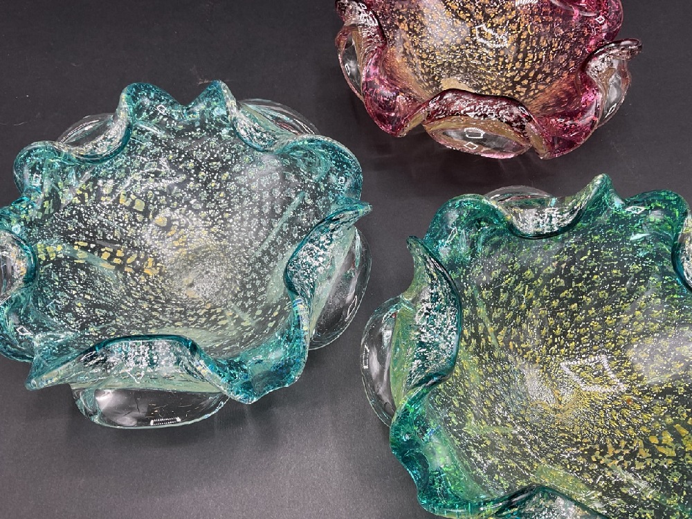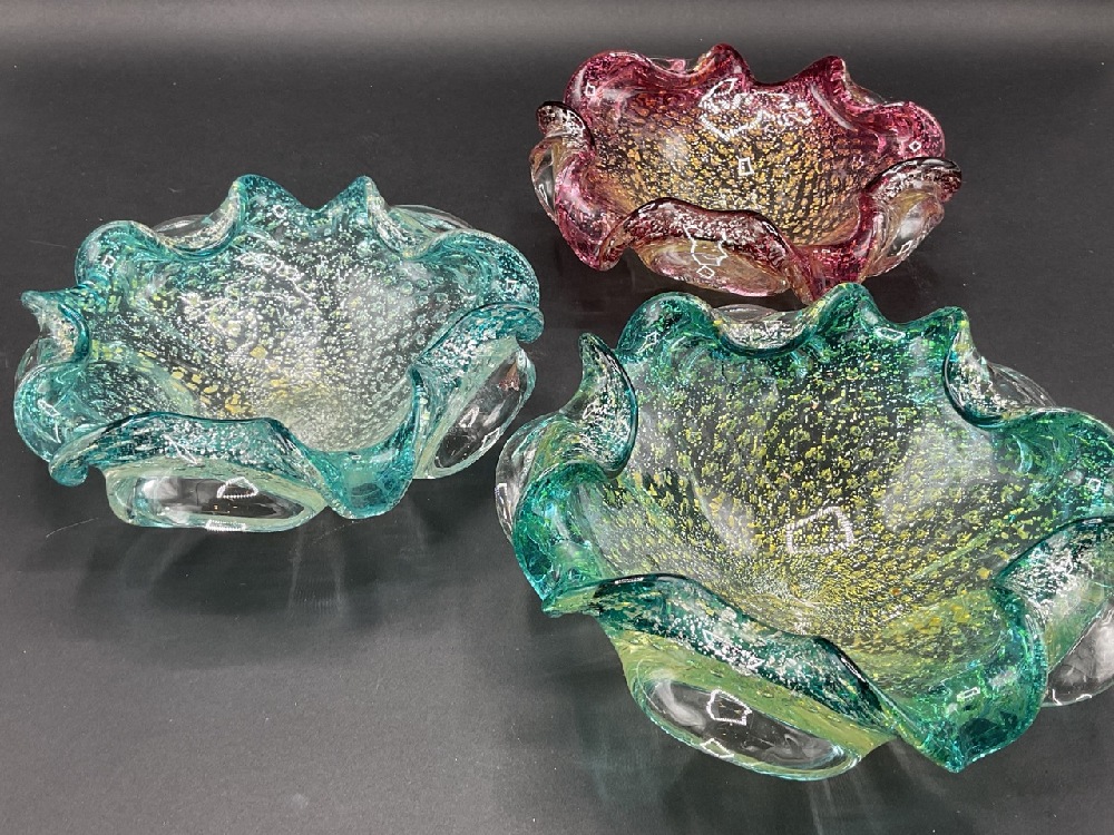Three (3) Vintage Murano Glass Bowls with Gold Fleck.