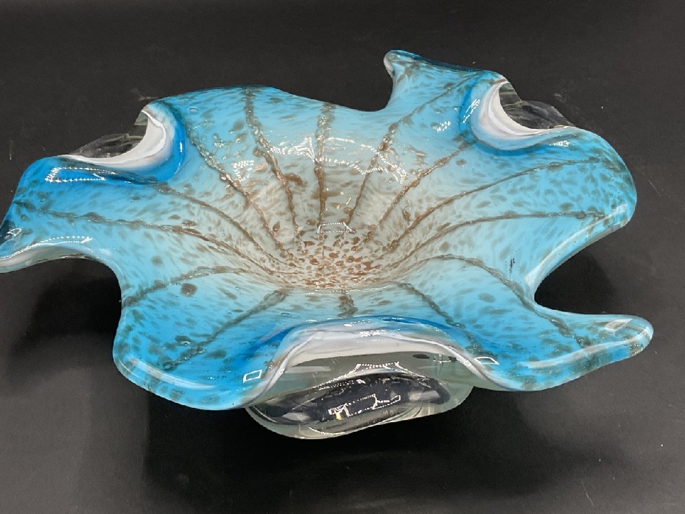 Vintage Blue, White and Gold Fleck Murano Bowl.