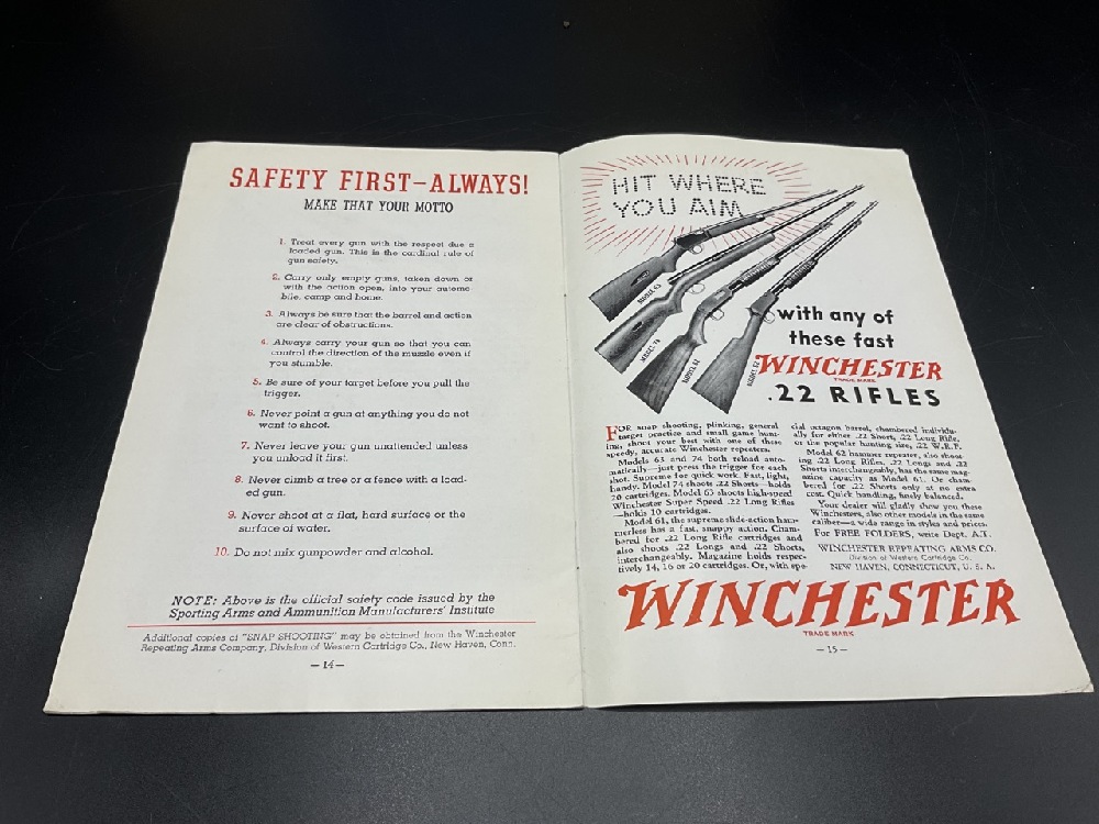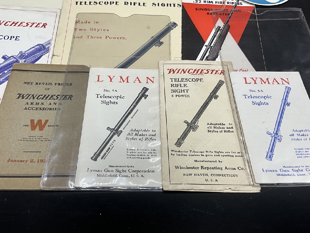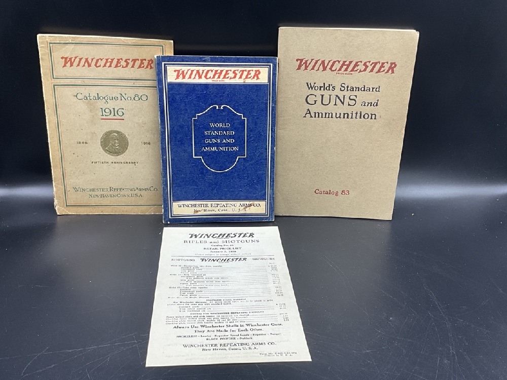 Winchester Ephemera Lot with Catalogues.Winchester 1916 Catalogue and Price List 15th Anniversary Edition Manufactured By The Winchester Repeating Arms Co. New Haven, Conn.USA, Press of Springfield Printing and Binding Co. Springfield , Mass. Winchester Guns and Ammunition Catalog No.83 1925 Manufactured By Winchester Repeating Arms Co. New Haven, Conn.,USA. Winchester World Standard Guns and Ammunition 1933 By Winchester Repeating Arms Co. New Haven, Conn.,USA