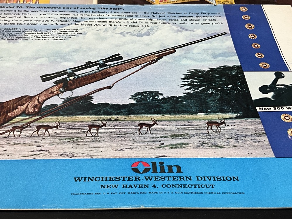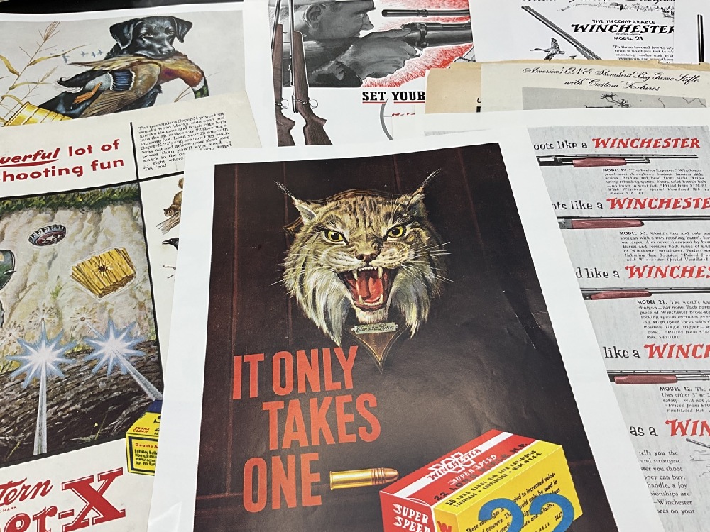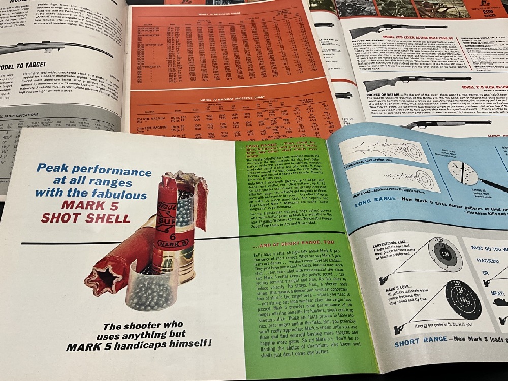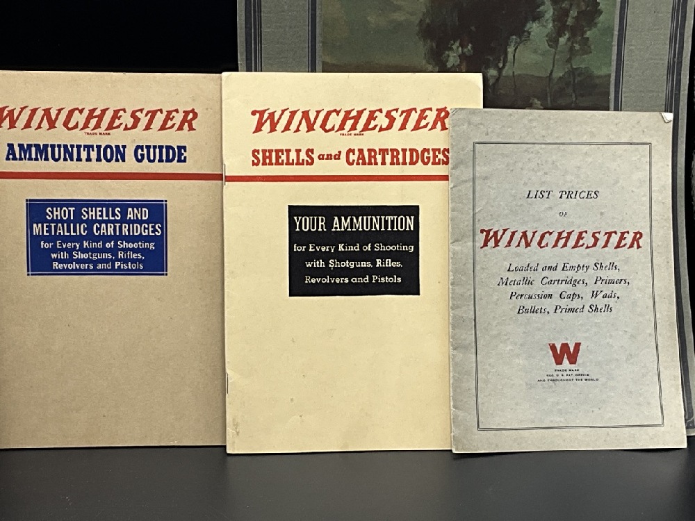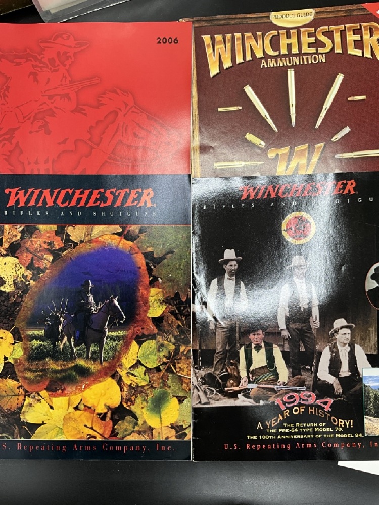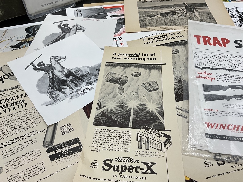 Winchester Ephemera Lot with Henry Ford 50th Anniversary Calendar . Includes Pamphlets, Advertisements,Product Guides, and Price Guides.