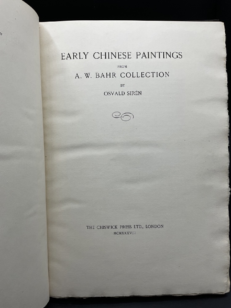 Early Chinese Paintings From A.W. Bahr Collection, By Osvald Siren. The Chiswick Press Ltd.,London MCMXXXVIII .