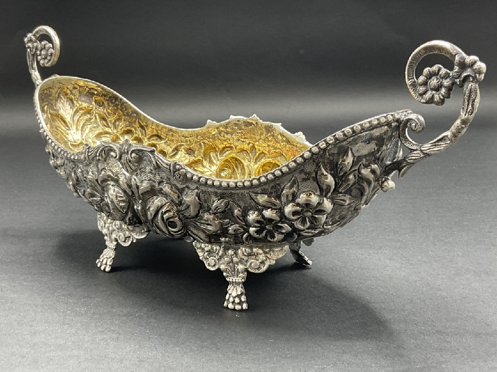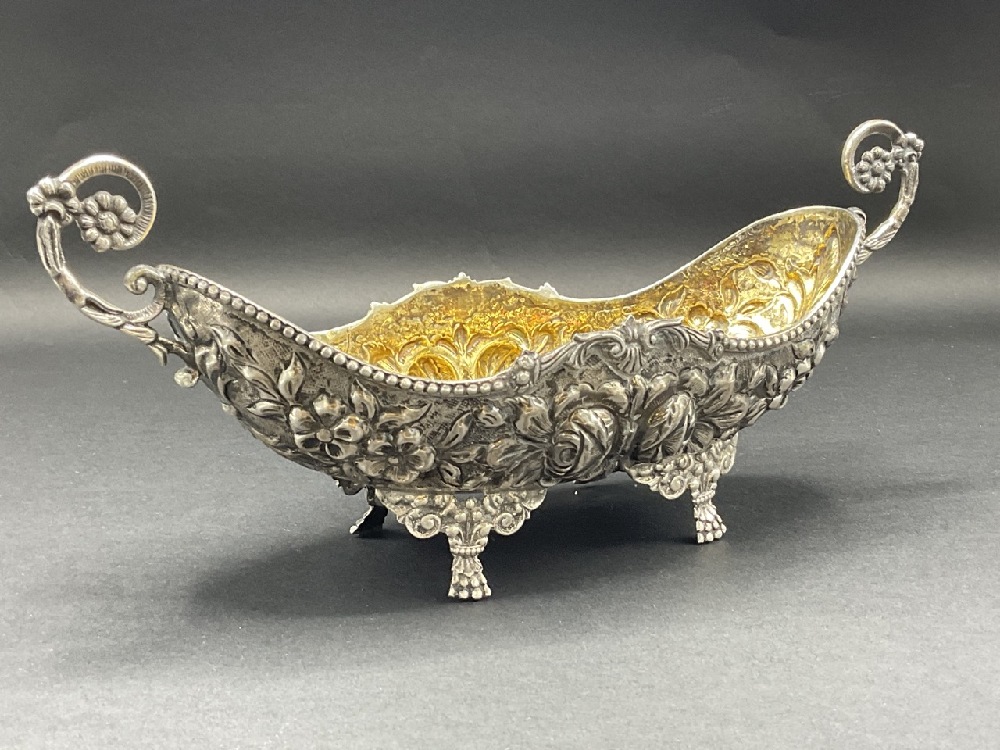 800 Silver Double Handled Footed Rose Centerpiece Bowl.