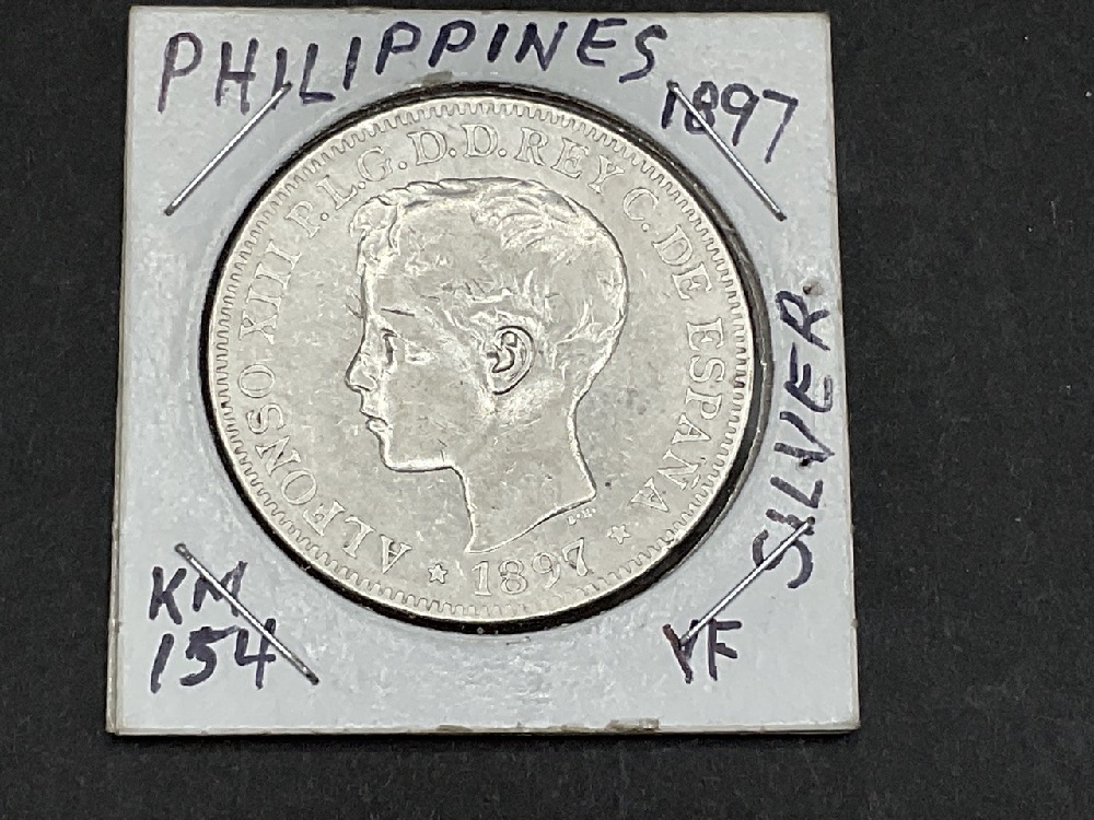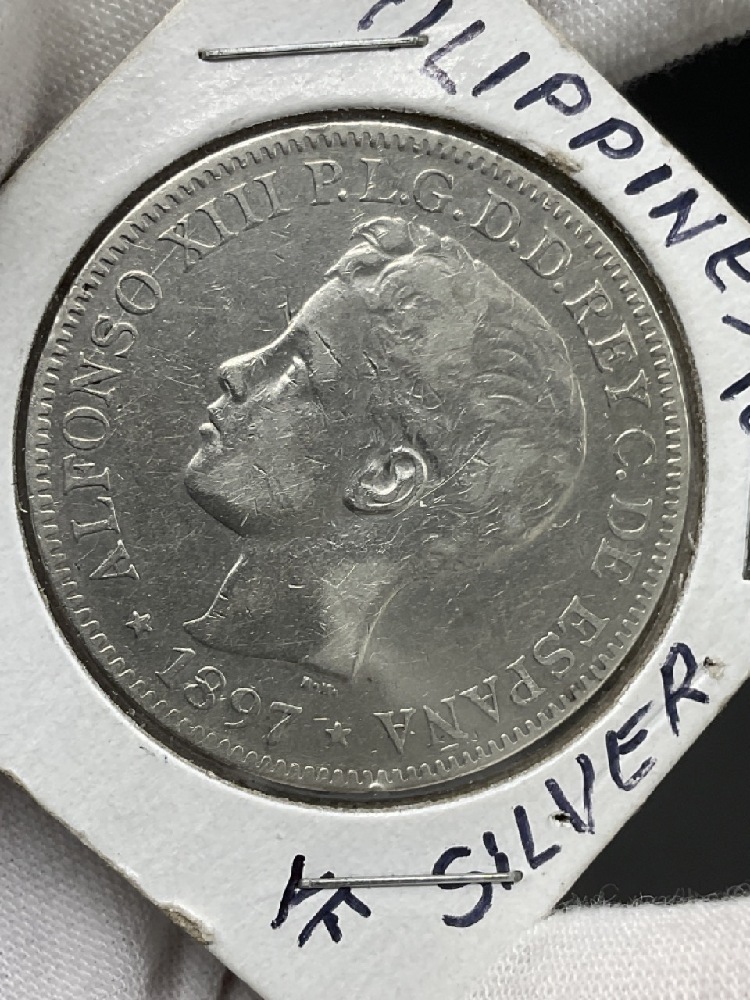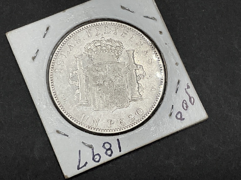 Philippines 1897 Silver Un Pesos .900 Pure Coin.