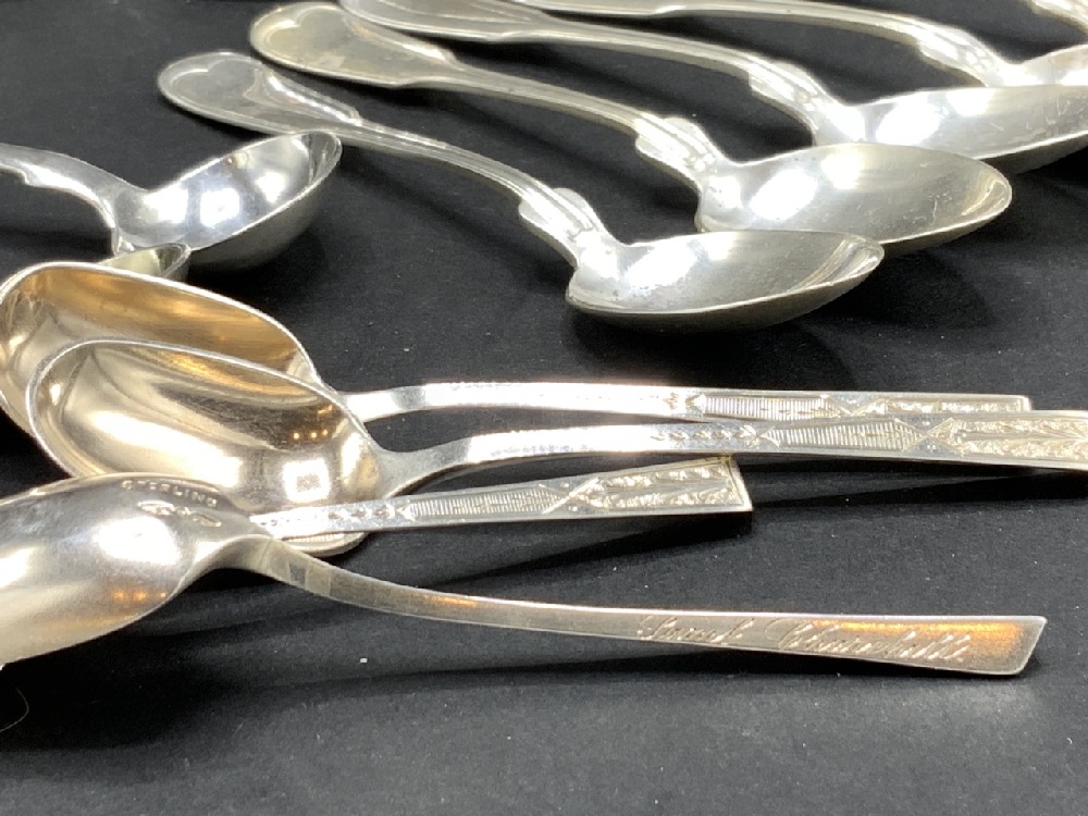 Estate Compiled Sterling Silver English and American demitasse spoons, tables spoons etc. As seen in photograph preview.
