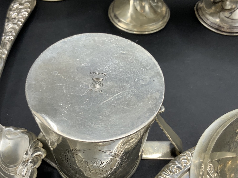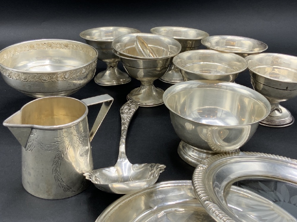 Estate Compiled Sterling Silver Objects. Sherbert cups, plates, milk pitcher, bowl and dishes. As seen in photograph preview. Most for scrap or repair.