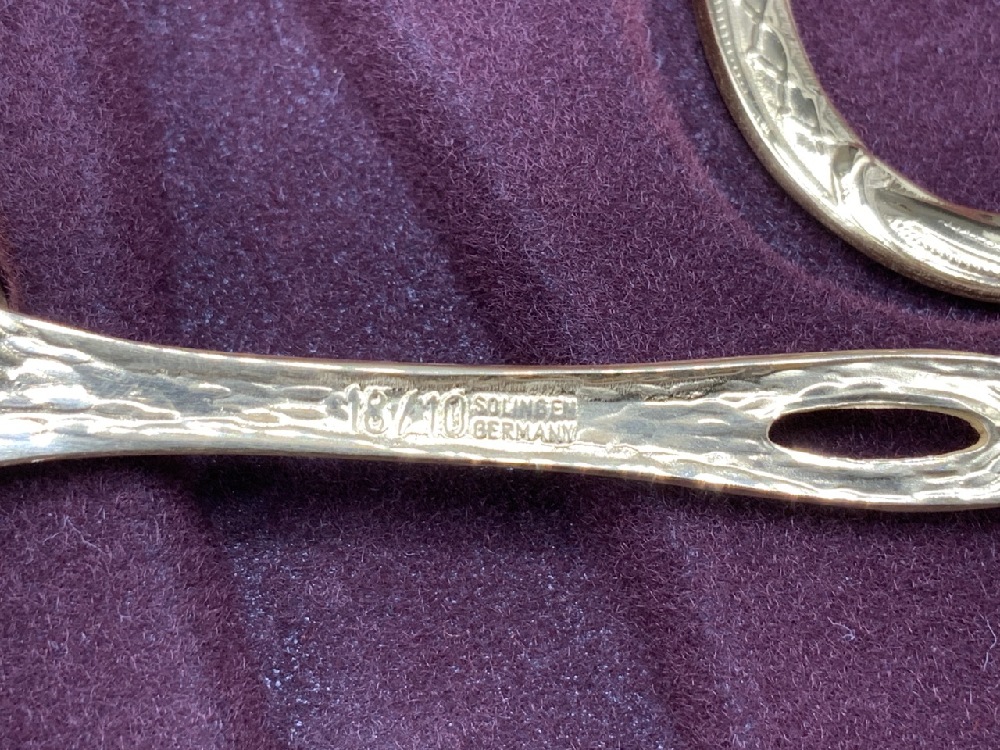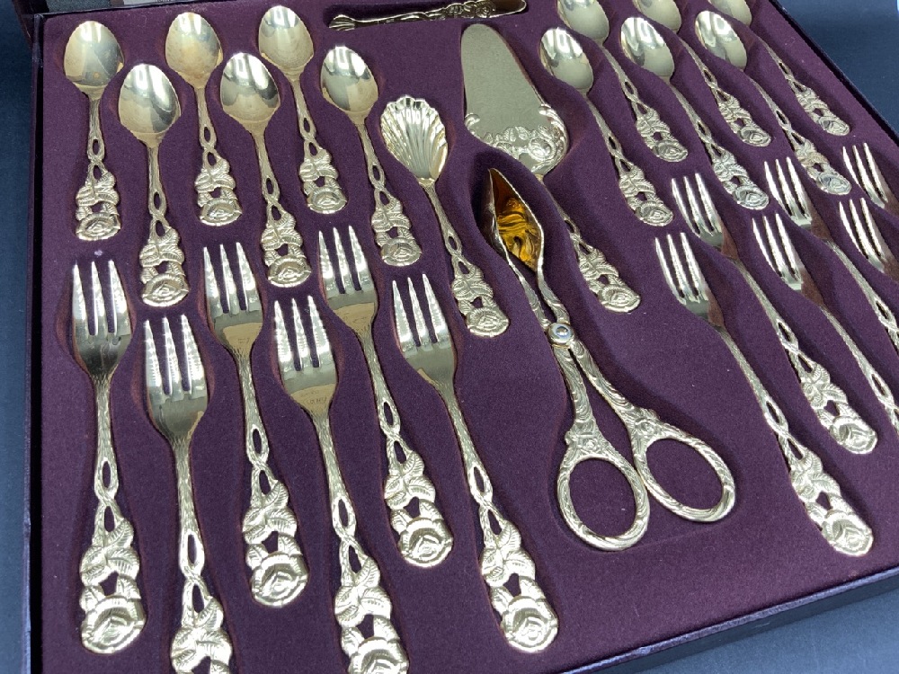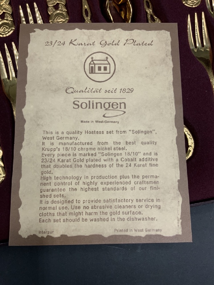 Solingen West Germany 23/24k gold plated hostess set in original box. c. 1950's or 60's.