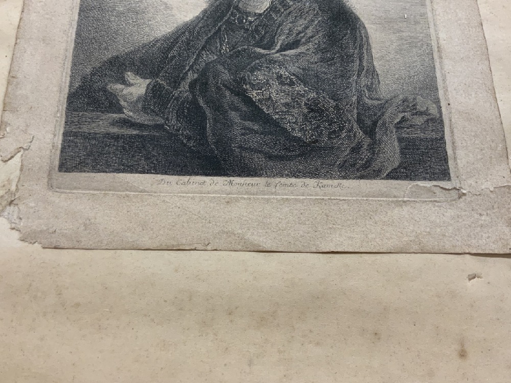 Old Woman with a Book: 7 1/2" X 6 1/4" (image size) and 9 1/2" X X 7 1/4" (sheet size) and 20" X 17 1/2" framed.