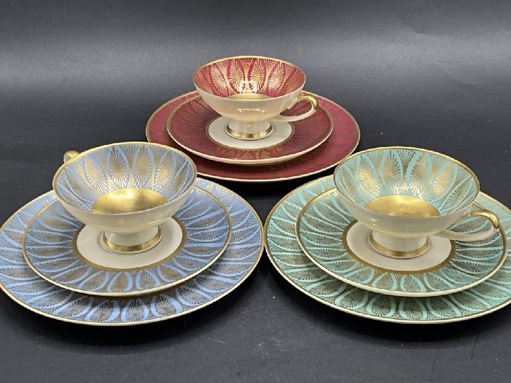 7 inch lunch plates cups are 2” x 4” sauces are 5 1/2 inch diameter near mint condition Sunburst pattern, Bavaria, Germany