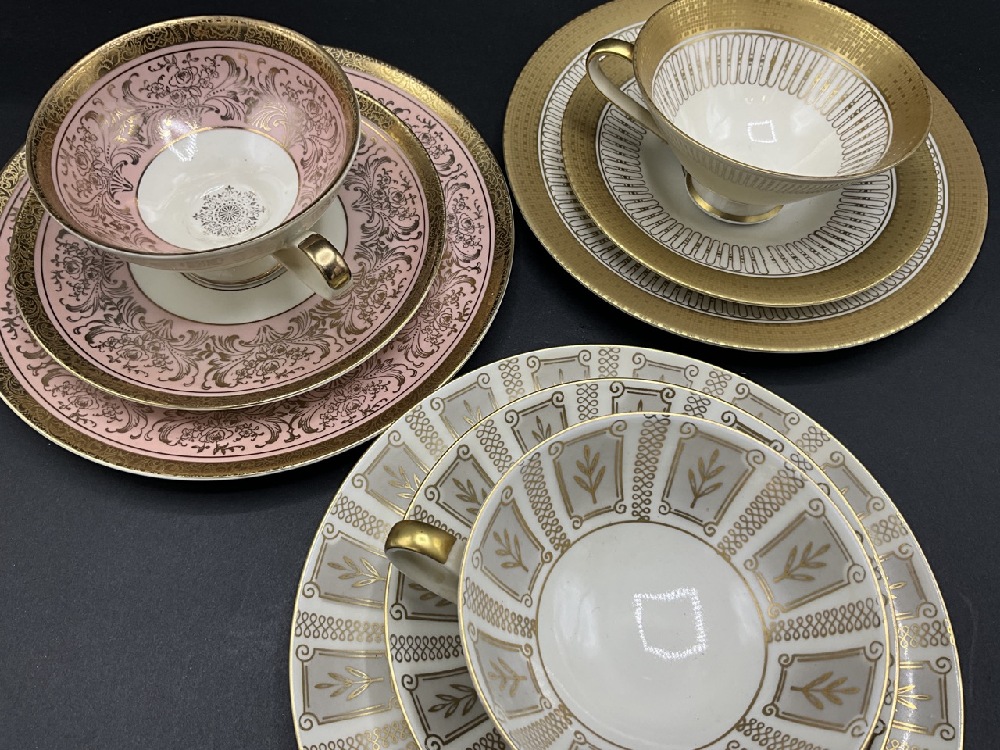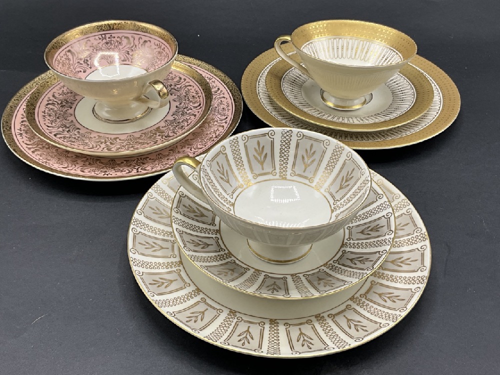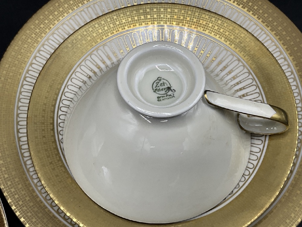 Bavarian Dessert plate with tea cup and saucer. Threes sets, two being made by Alka and one Zeh Scherzer.. Bavaria, Germany.