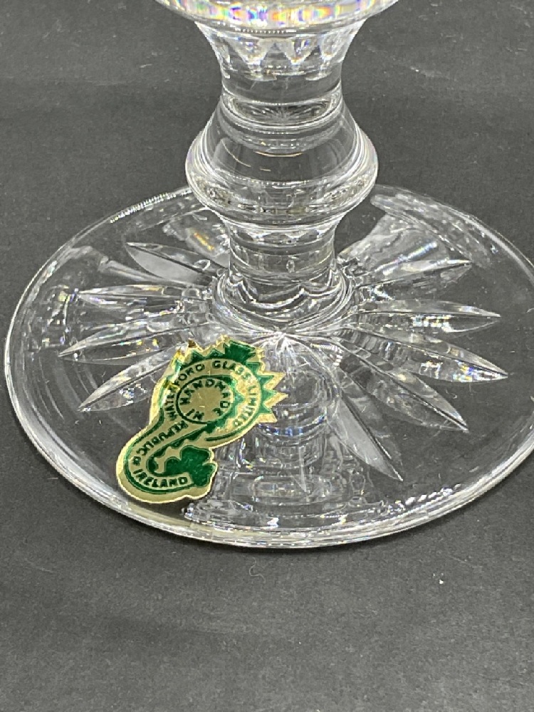 Set of Eight (8) Waterford Goblets. All but one still having original label affixed to glass. Unused set.