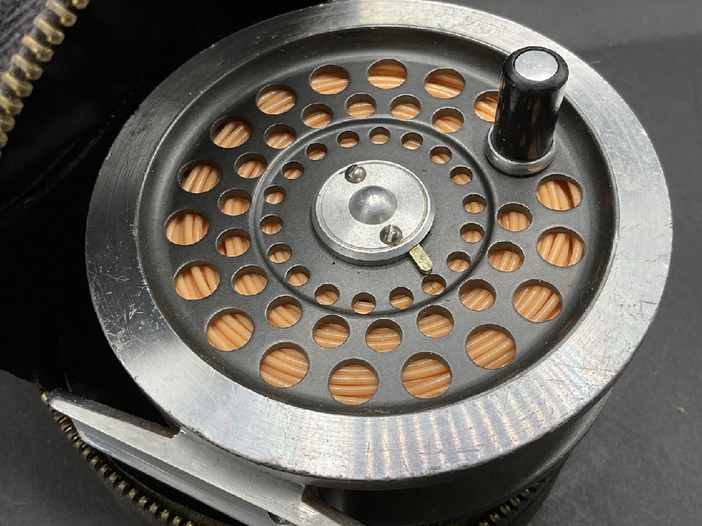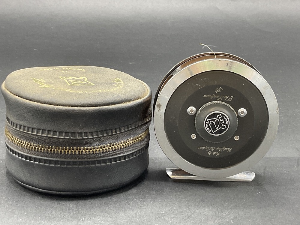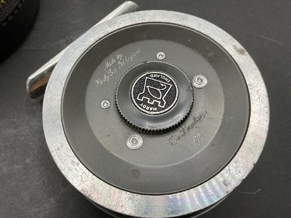 Hardy Fishing Reel. Made in England. The Sanborn 5/6. Used condition with some wear. 3 1/4" diameter. Includes original case. Working order.