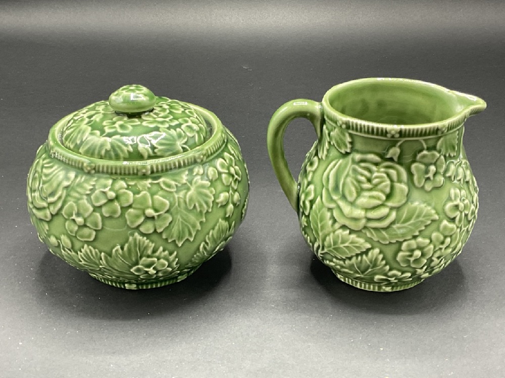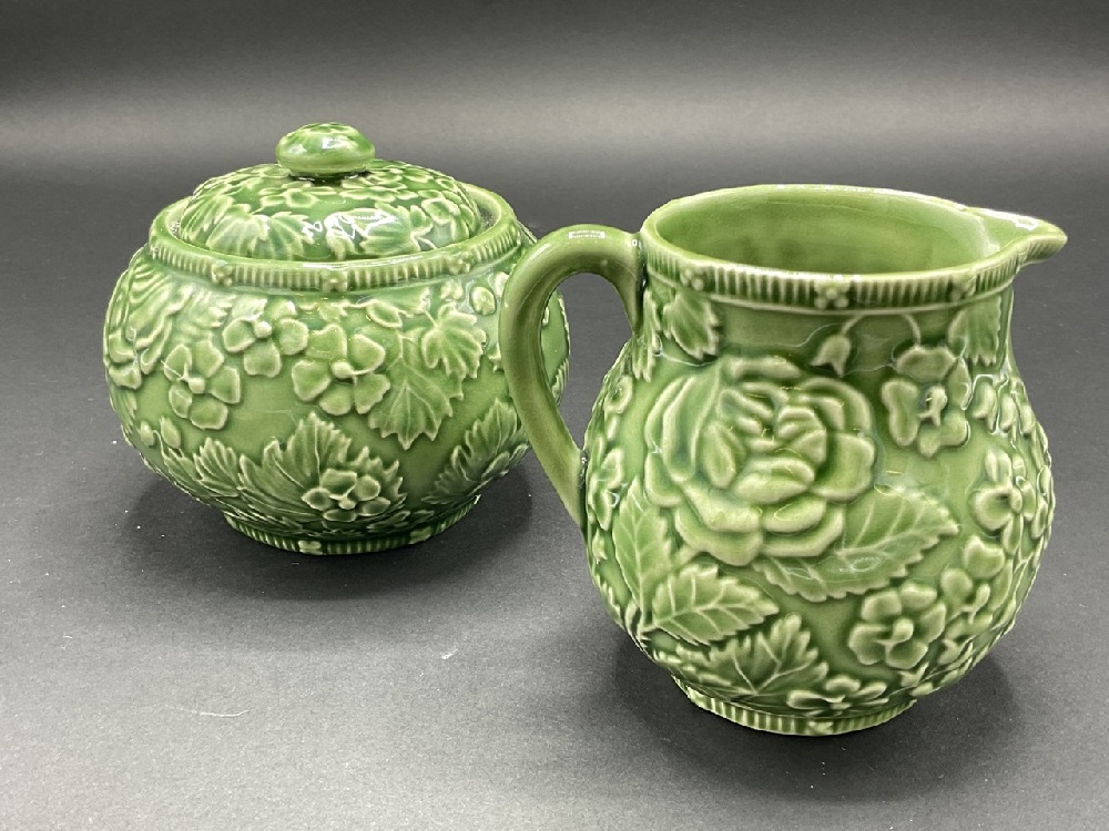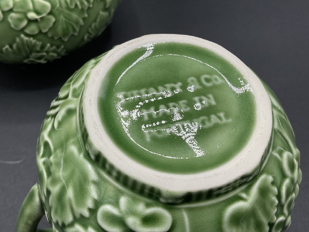 Tiffany & Co. porcelain sugar and creamer in green.