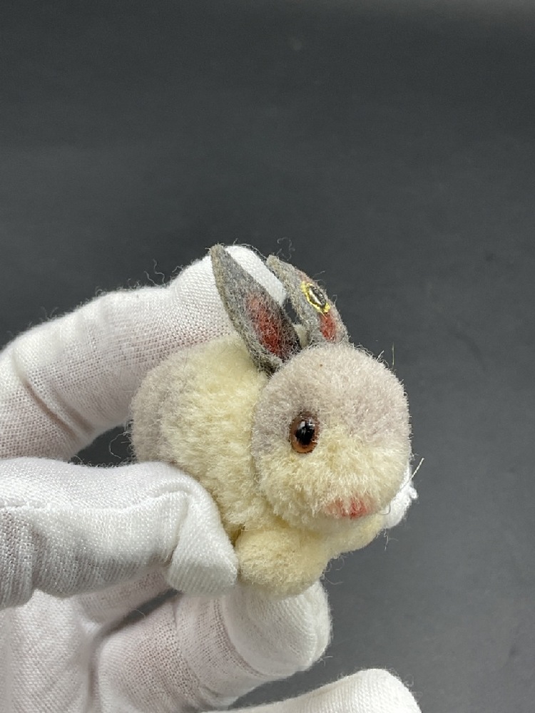 Early Lavender Purple and White Steiff Bunny Rabbit. Made of Wool.
