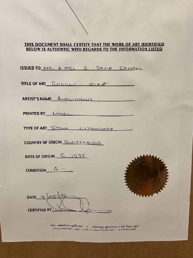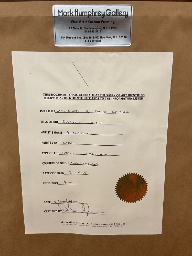 ROSSLI Zieht by Ivan E. Hugentobler. Cigar Advertising poster. French 1935 stone lithograph.
