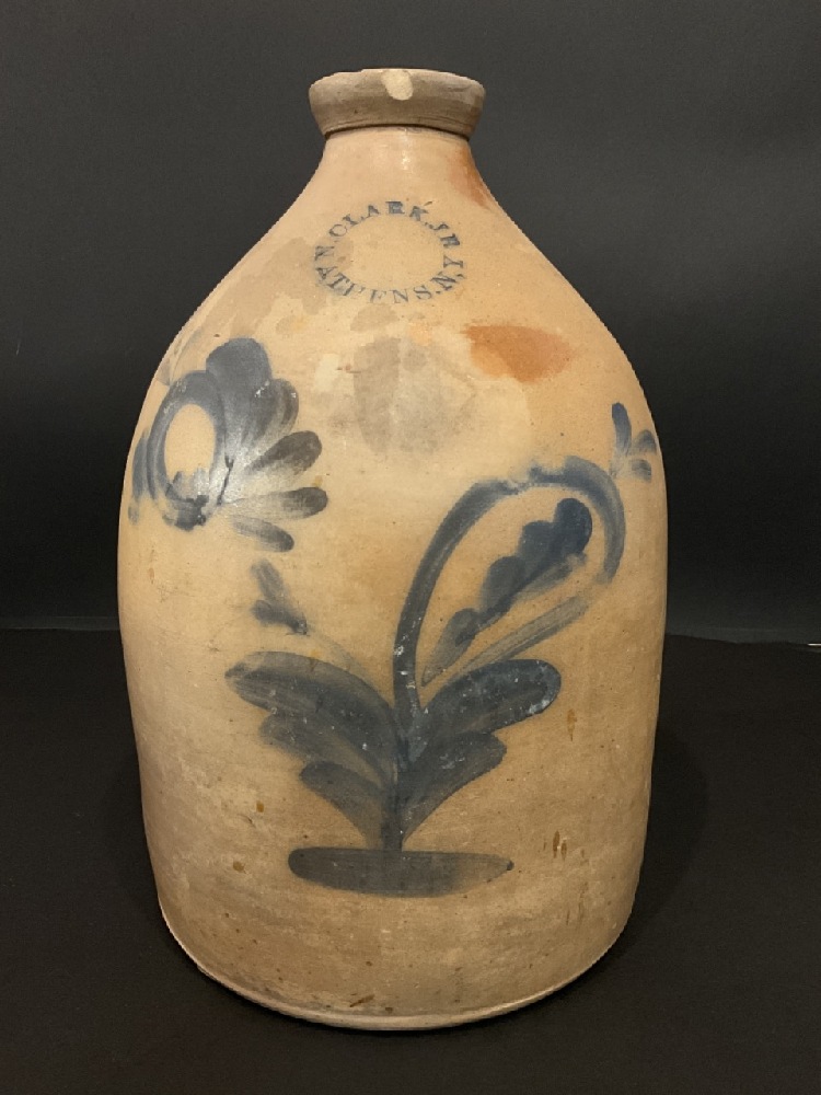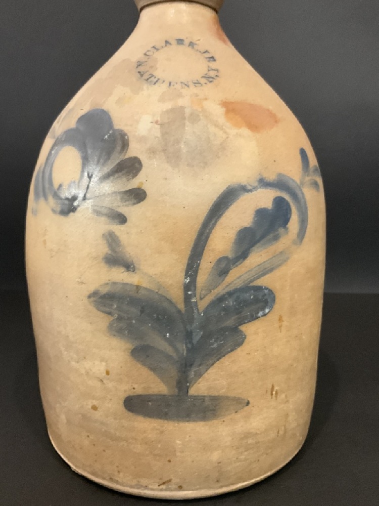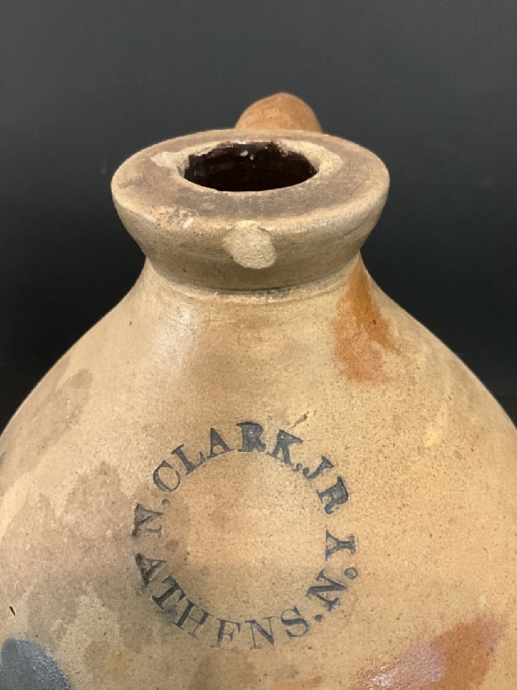 N. Clark,Jr Athens, NY Stoneware Blue Decorated Jug