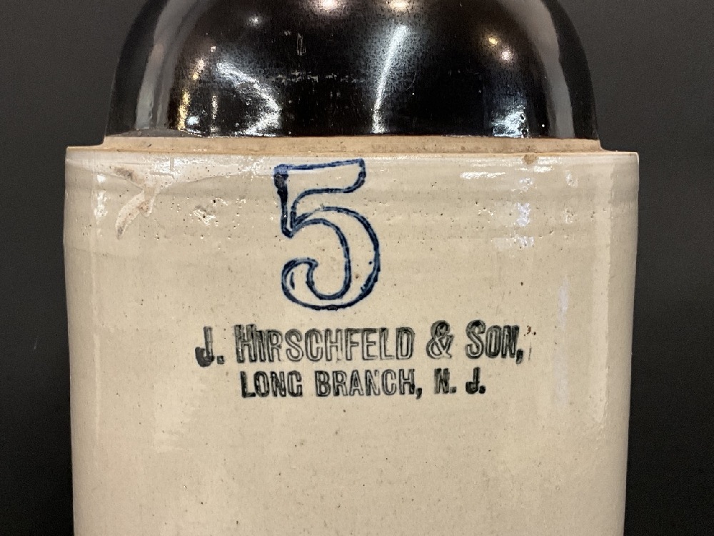 J.Hirschfeld & Son, Long Branch, NJ 5 Gallon Brown Glaze Stoneware Jug
