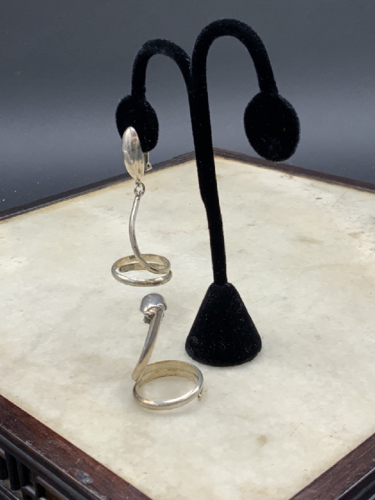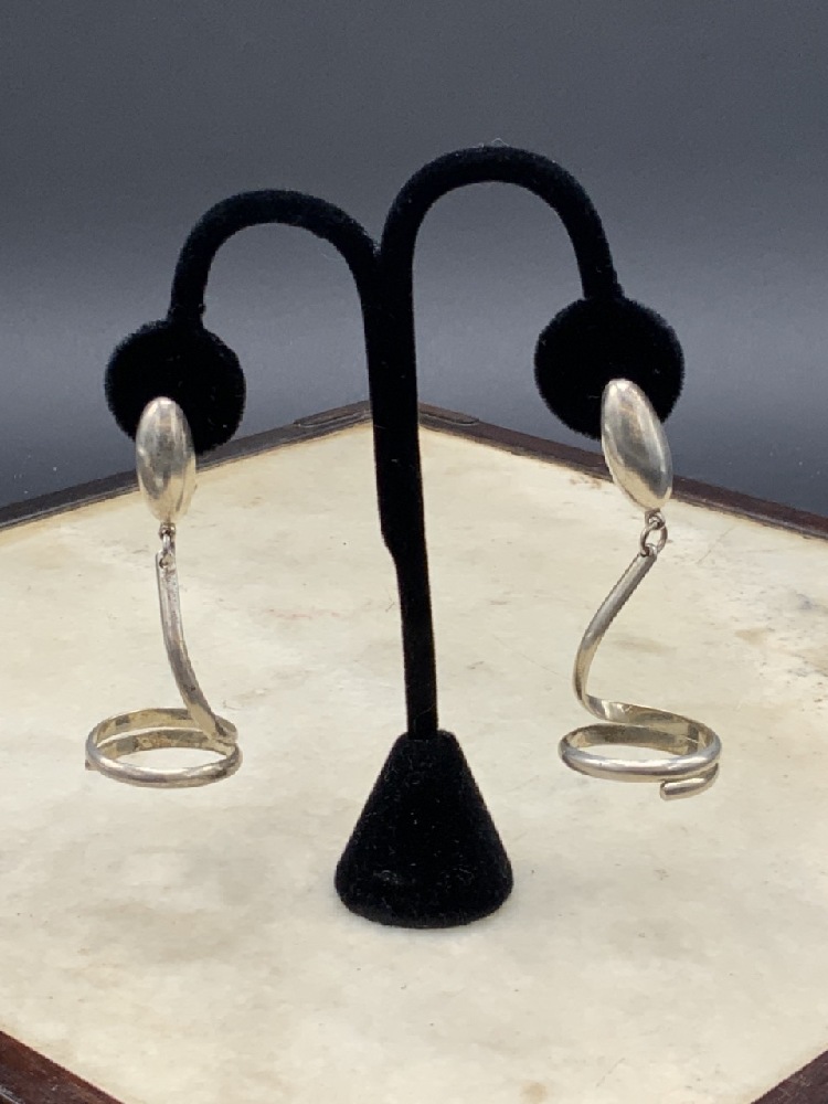 Mexican TA-73 (Taxco) 925 Snake Dangle Clip On Earrings.