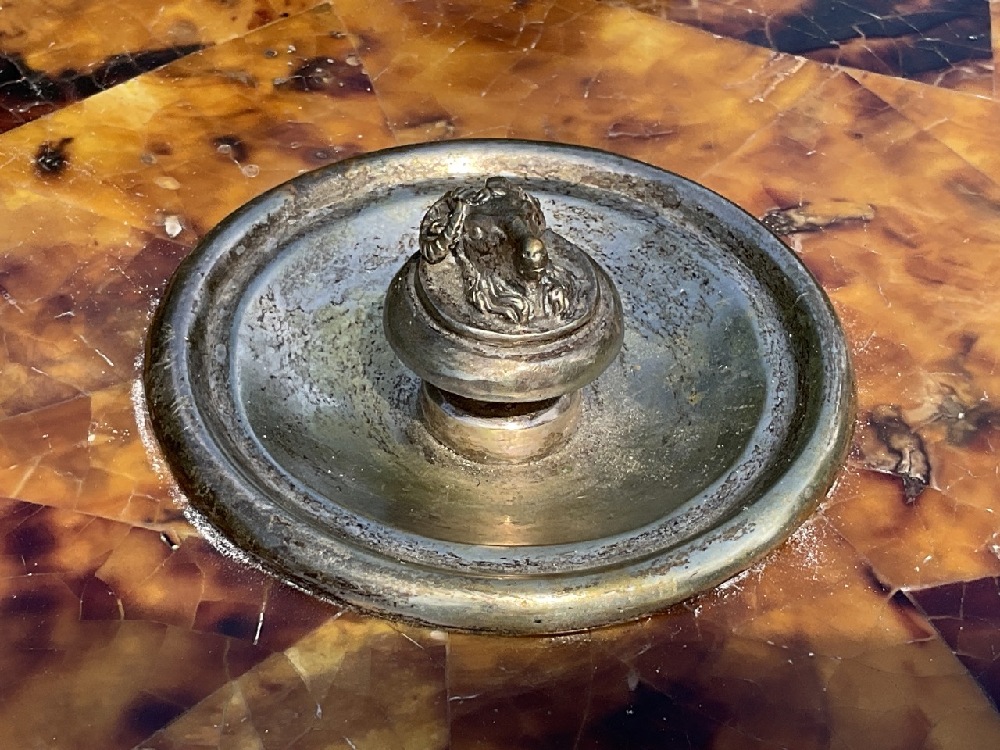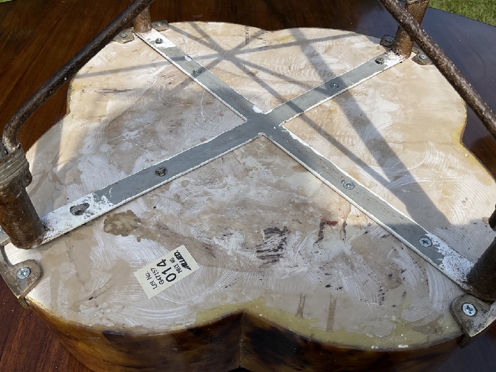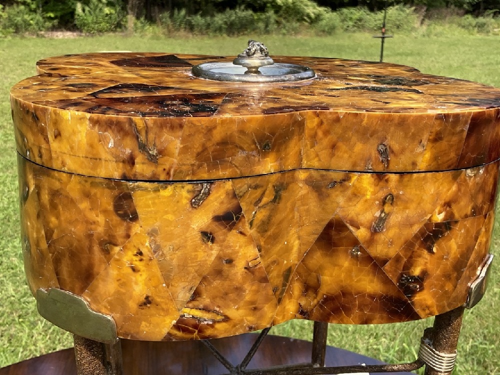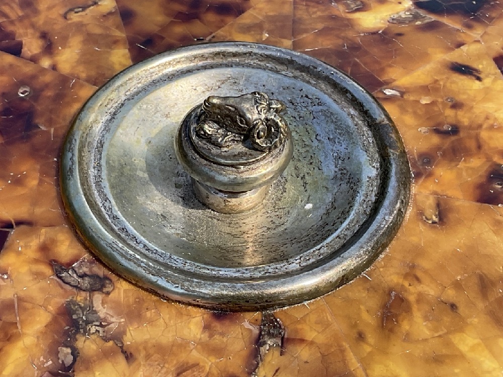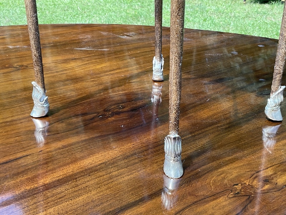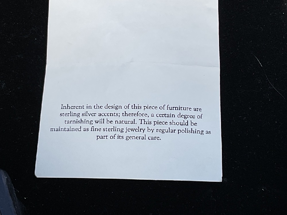 Ferguson Copeland Limited LTD. Center Table. Table has Sterling silver accents. Table body made of composite material. The interior of piece has some cracking/splitting. Minor repair needed.