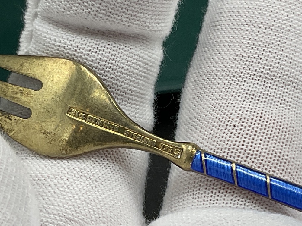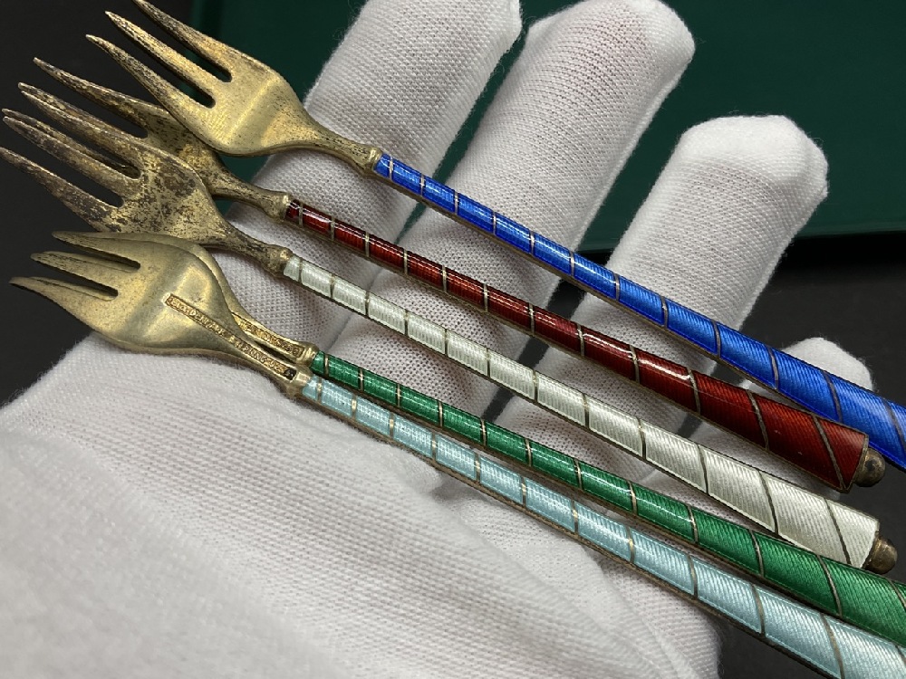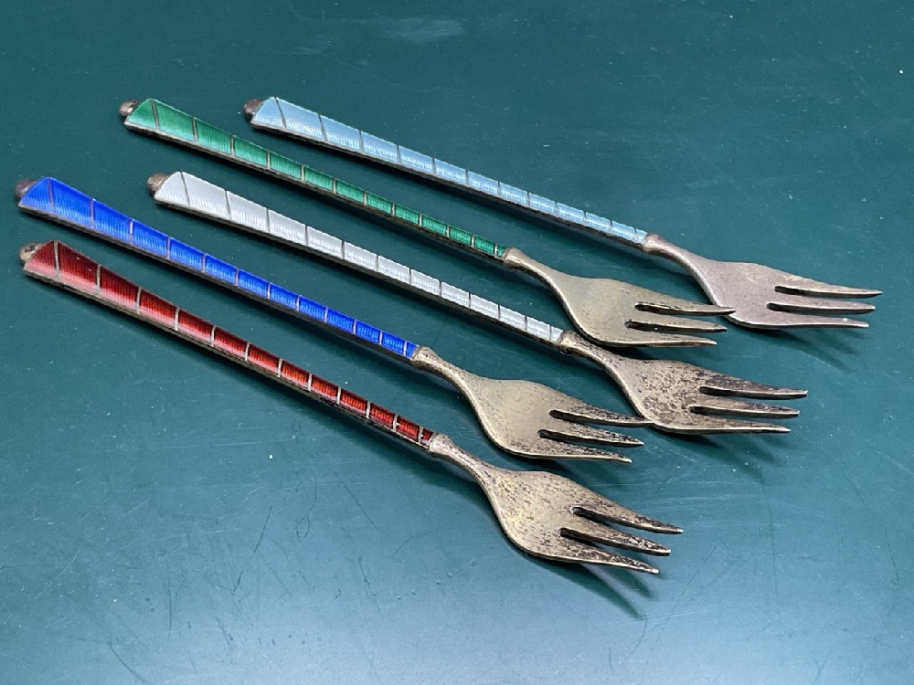 Five (5) Sterling silver enameled forks.