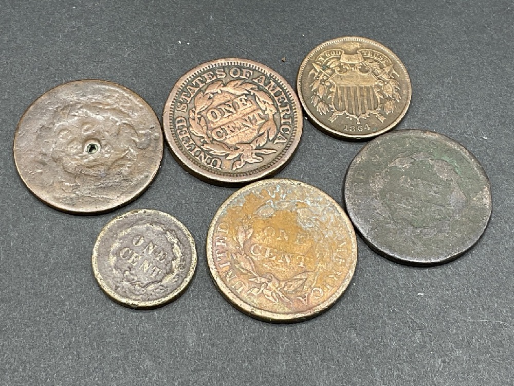 1859 INDIAN HEAD, 4 Large cents 1847 and No dates, 1864 2 Cent
