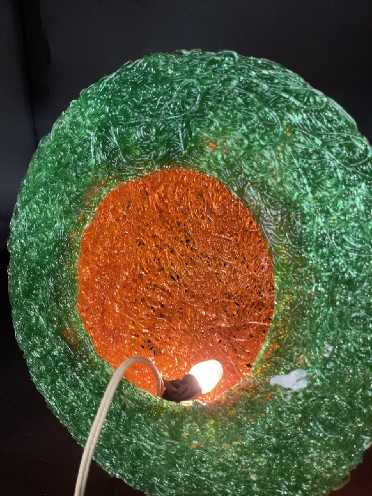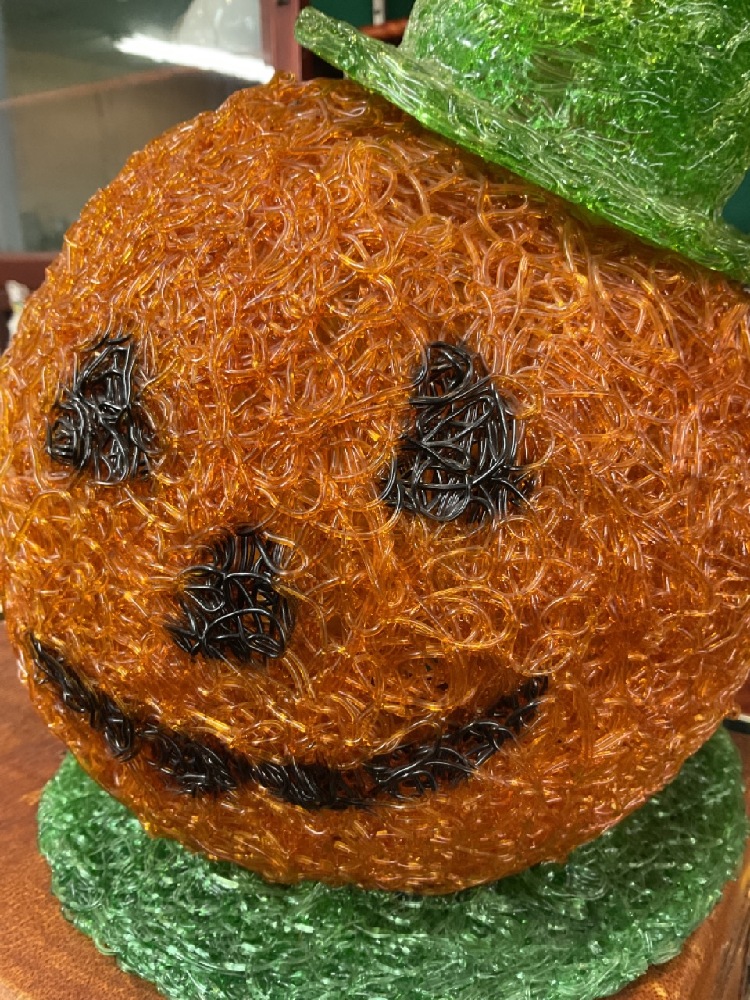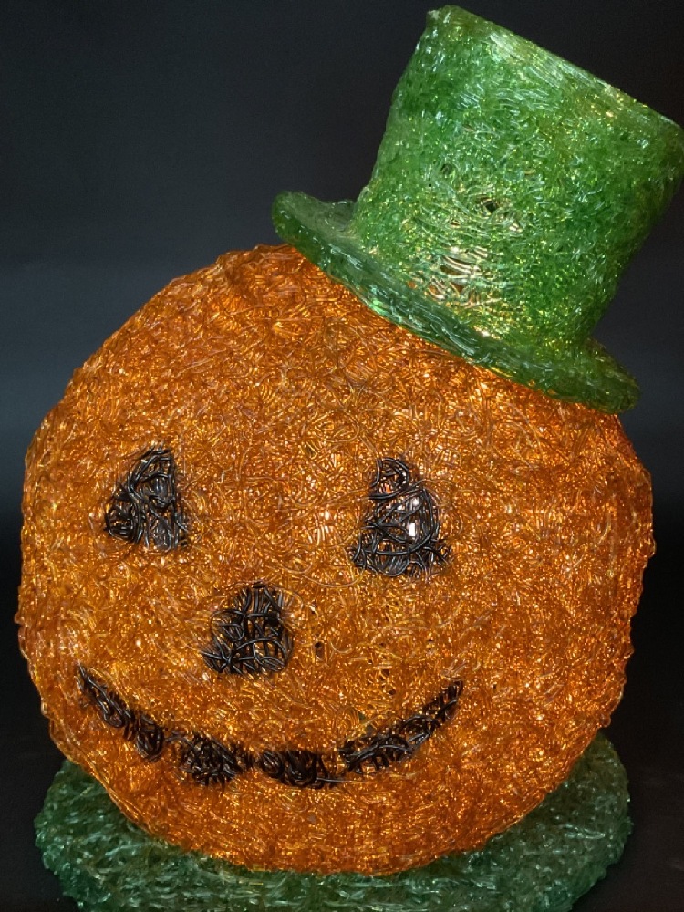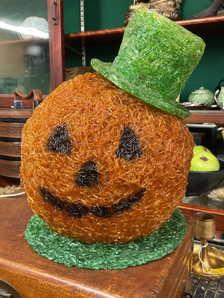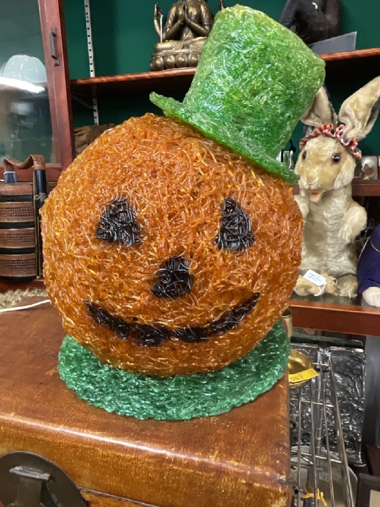 1960's Spaghetti Spun Fiber Glass Electric Light Up Pumpkin.