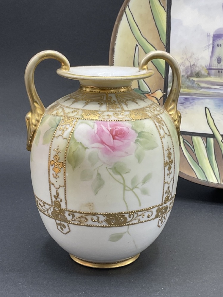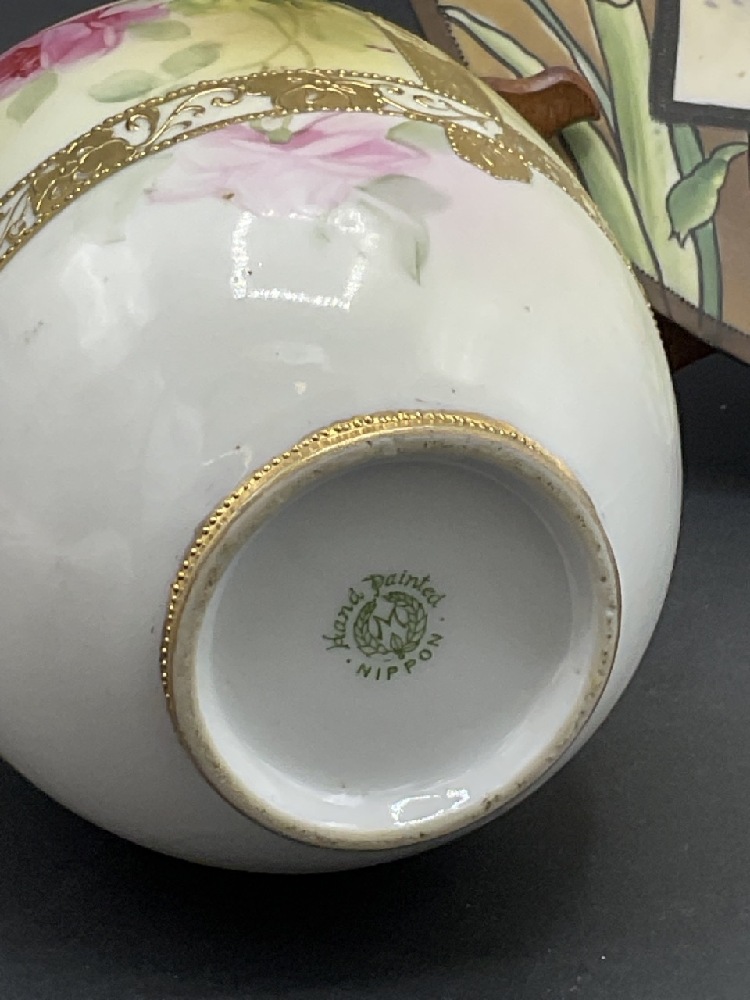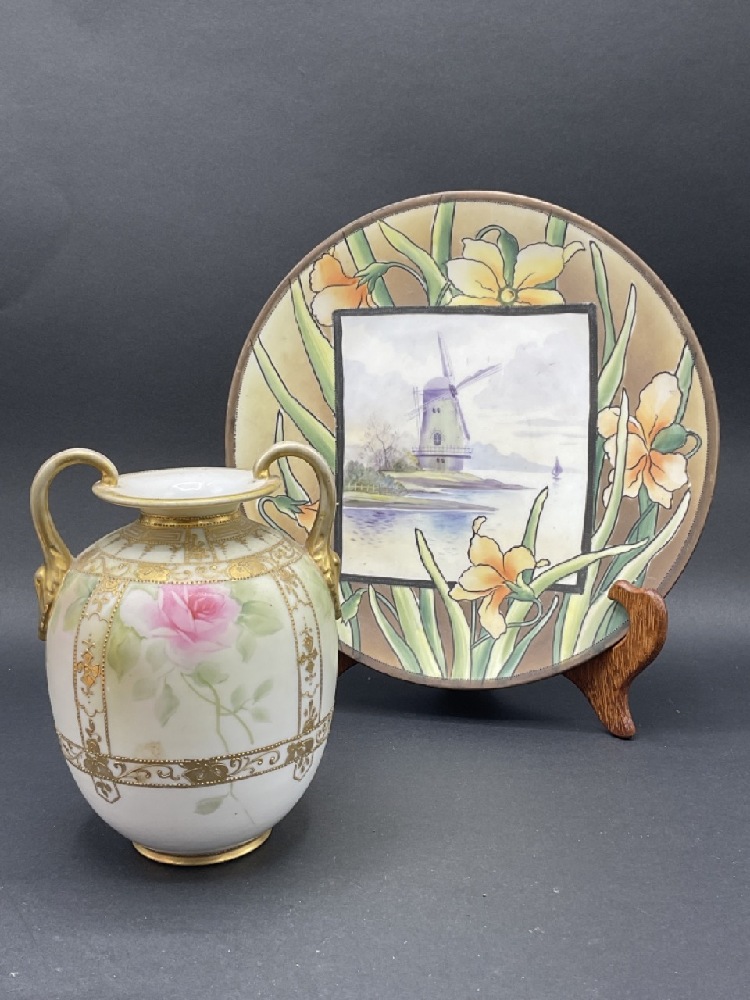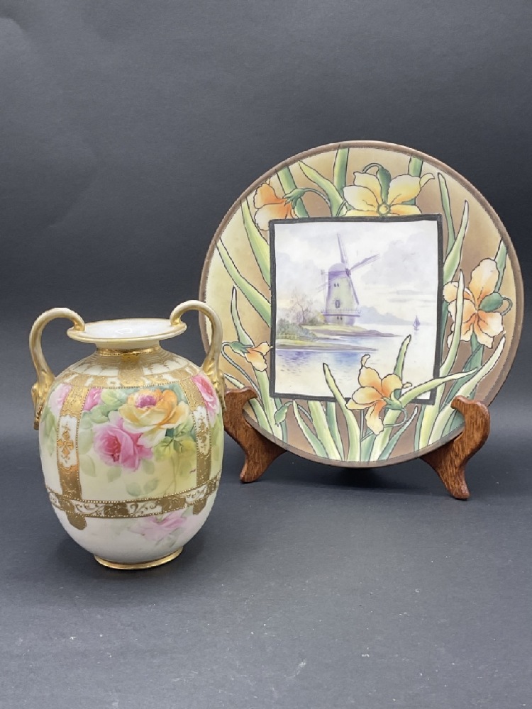 Nippon Porcelain Hand Painted Plate and Vase w/ Moriage Decoration.