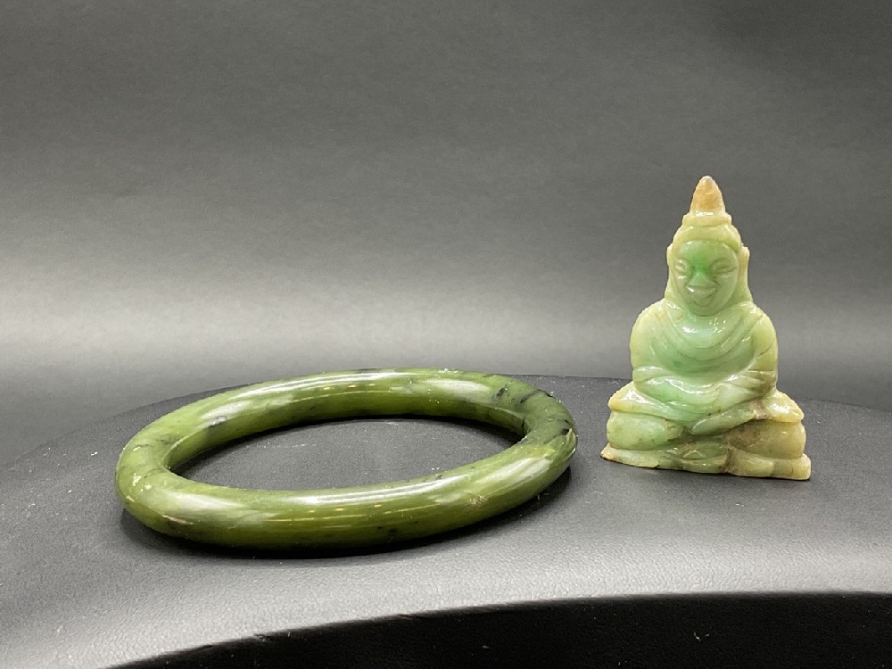 Chinese Green Jade Buddha and Bangle Bracelet.