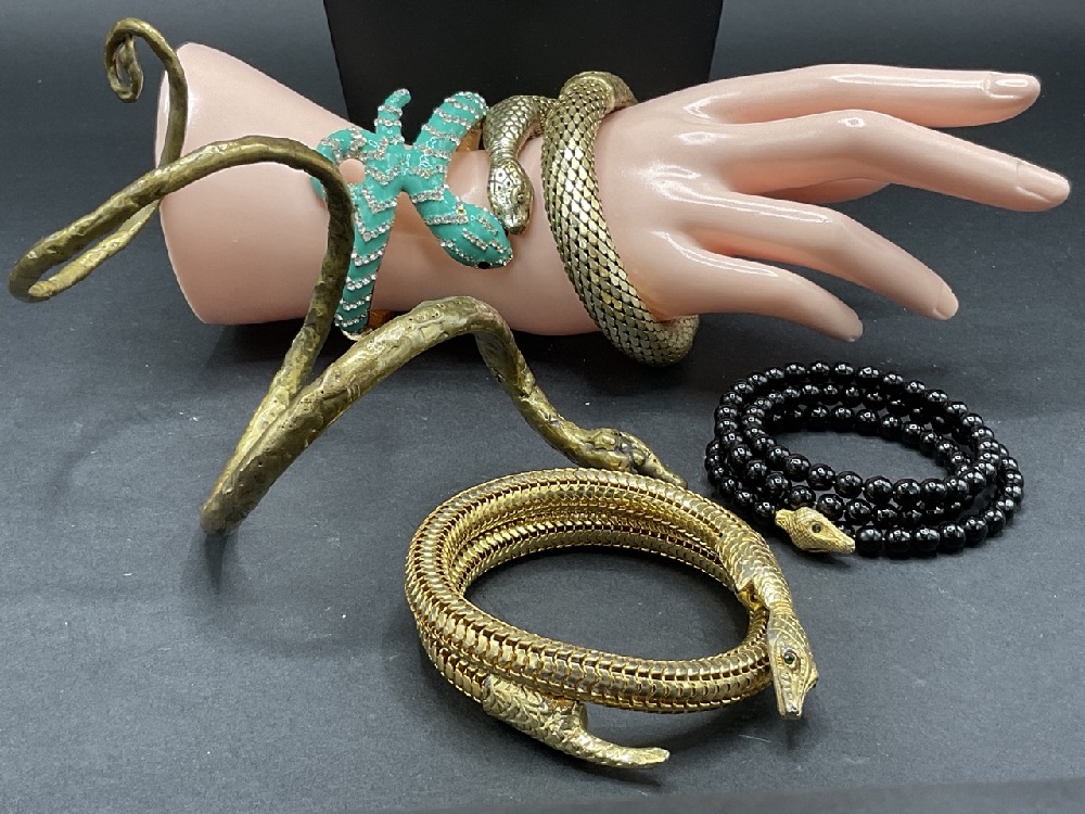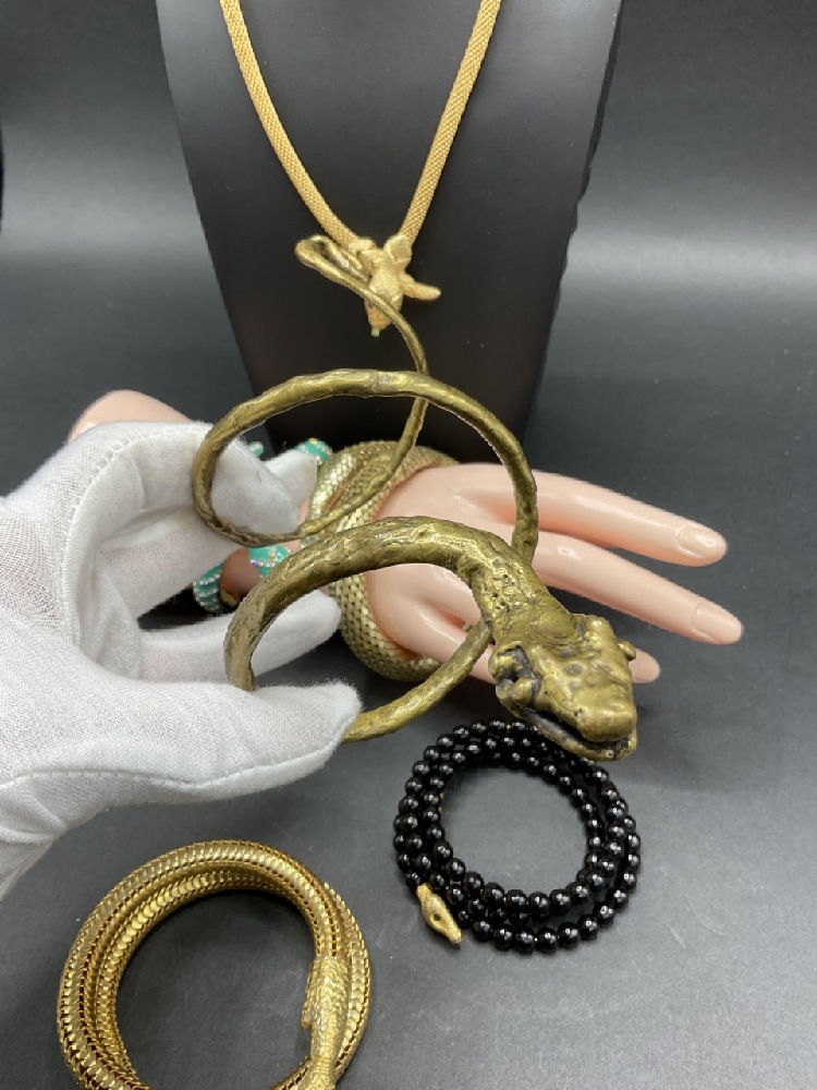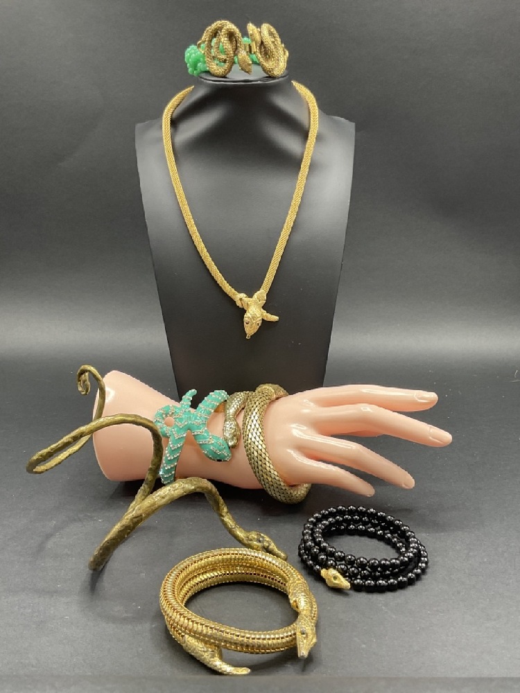 Vintage Costume Jewelry Snake Bracelets and Necklace.