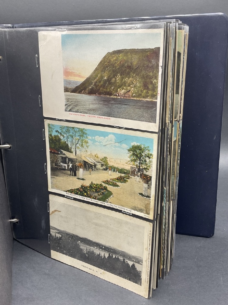 280+ a vintage postcard album, mostly Peekskill, New York, Mahopac, Bear Mountain, Warwick, Memphis, Tennessee Zoo, over 100 cards are Peekskill, Lafollette, Tennessee real photos, Tarrytown, New York, West Point, New York, Buchanan New York, collection is all from one family.