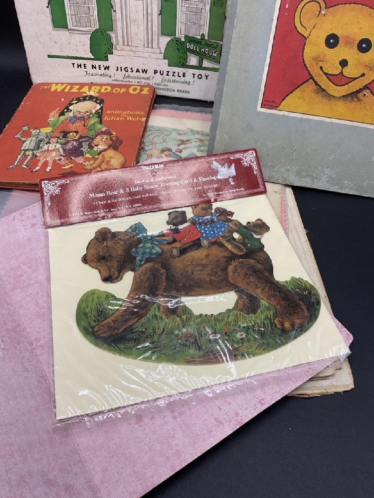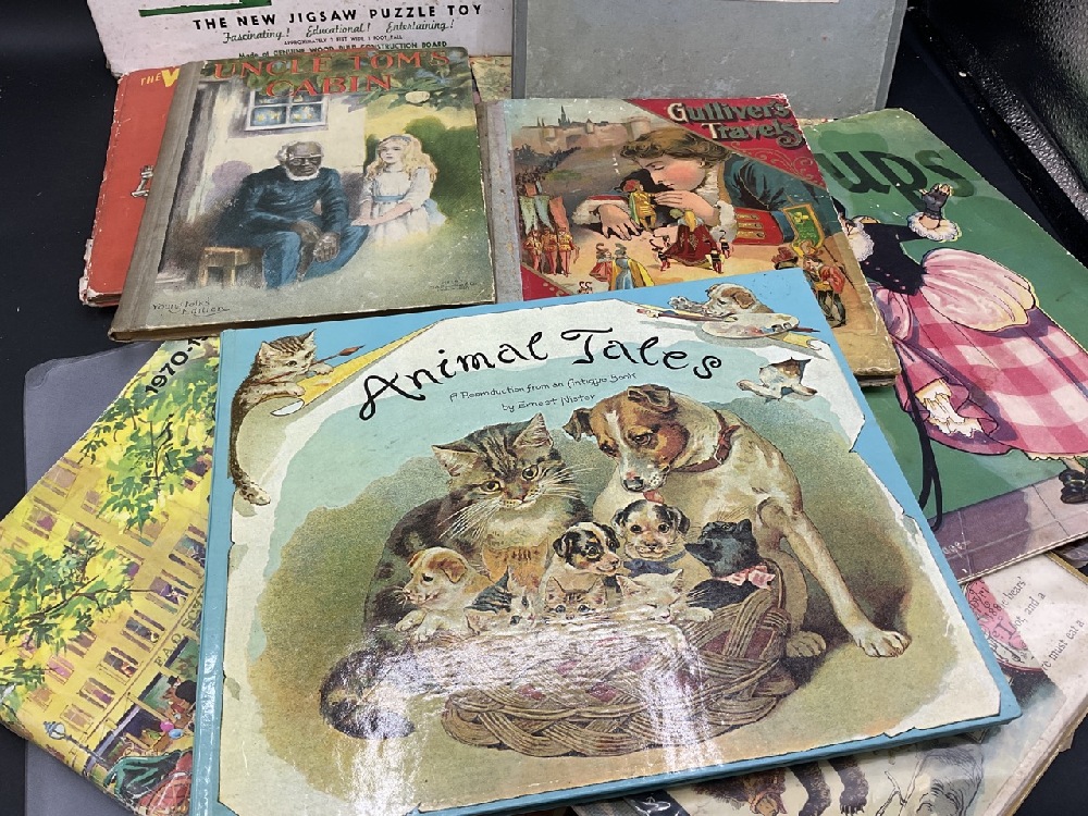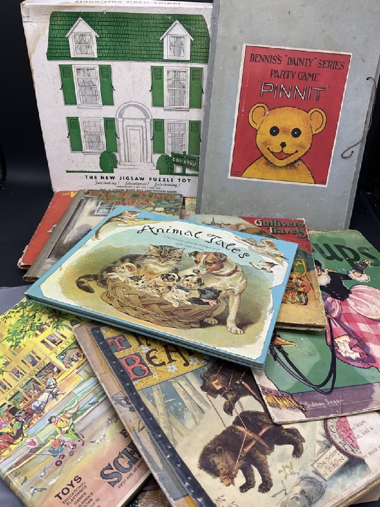 Assorted Children's Books, Jig Saw Puzzle Toy by Rabbin-Schenkel. Deniis Dot Series Party Game Pin Up, Gulliver's Travels, Three Bears, Wizard of Oz, Nativity Pop Up and More. Fair to Good condition.