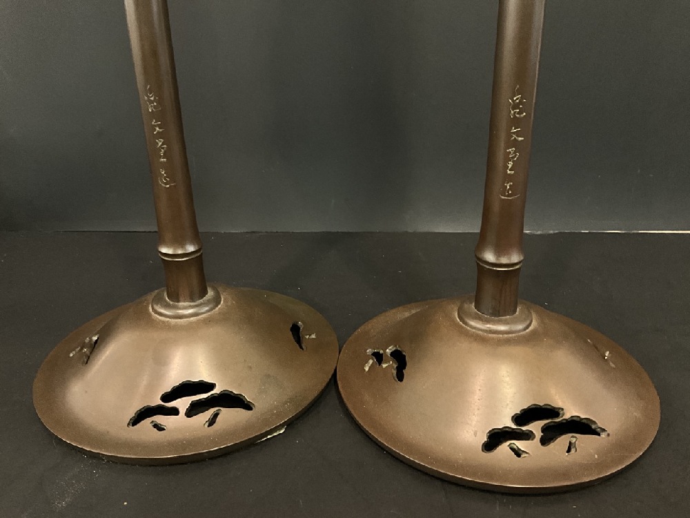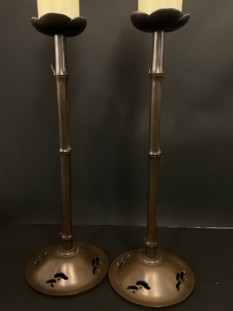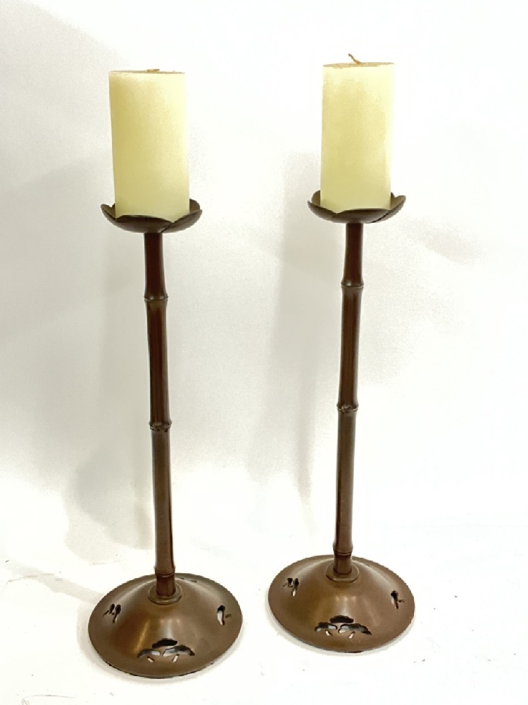 Japanese Bronze Bamboo Candle Pillars