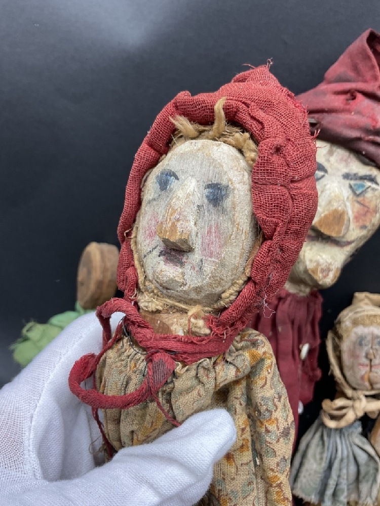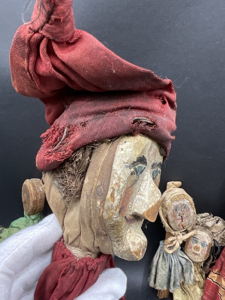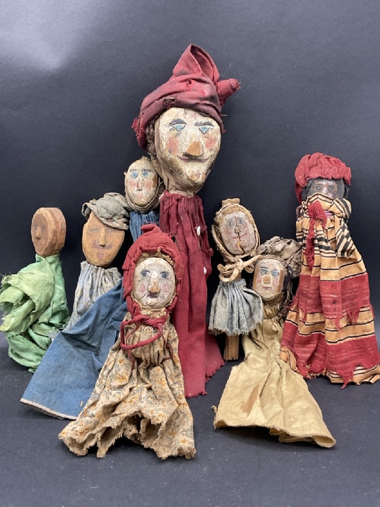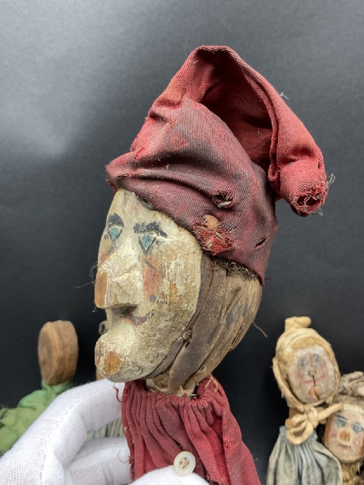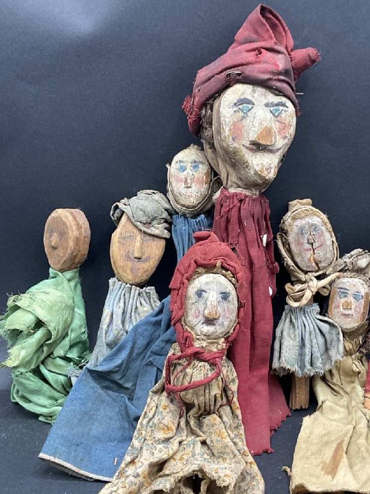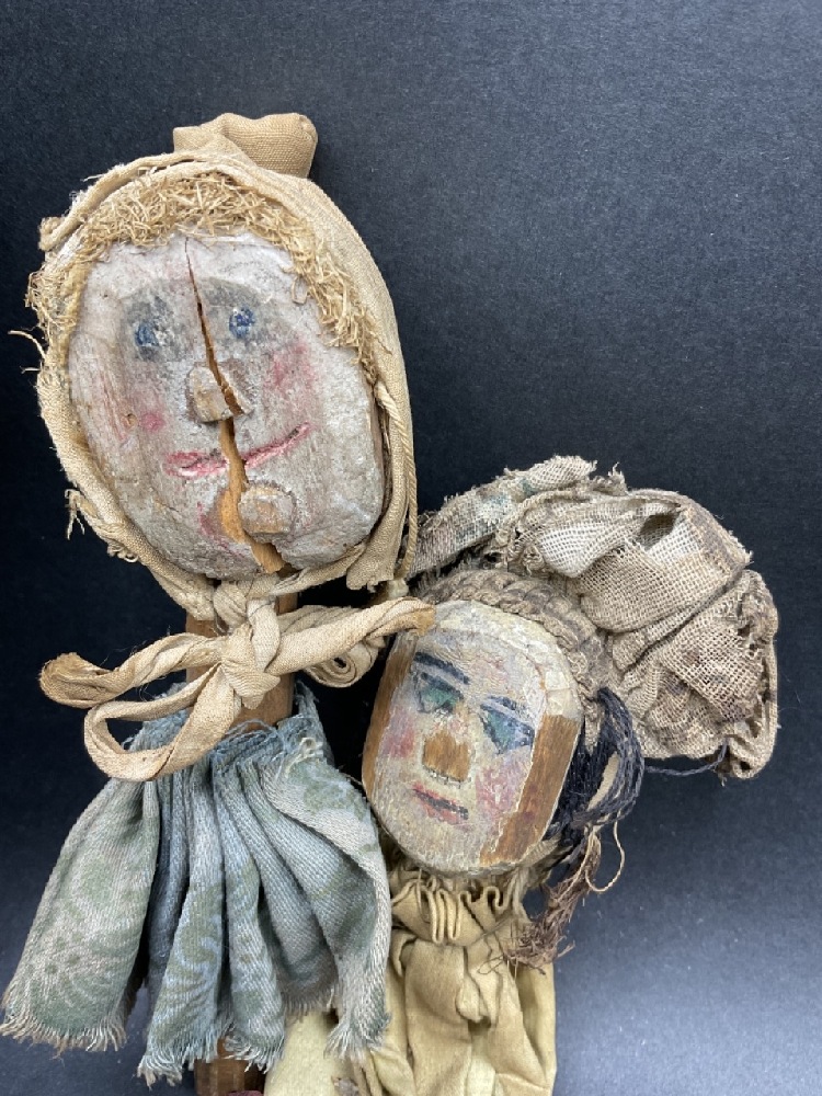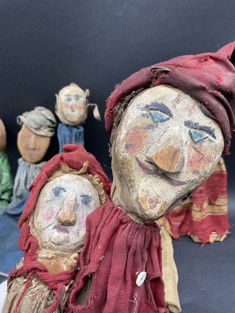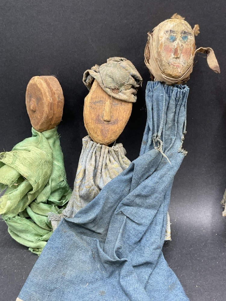 Primitive Punch and Judy Wooden Rag Doll Puppet Set.