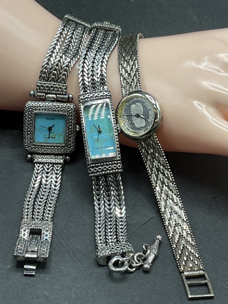 Three Sterling Silver Banded Fashion Watches by Ecclissi.